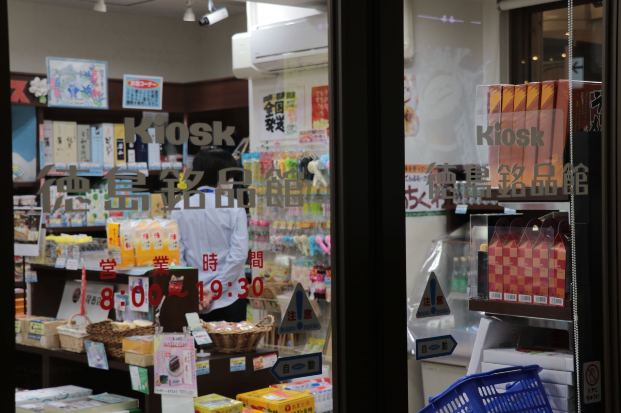 徳島駅の改札すぐ目の前にあり、列車やバスの利用前後に気軽に立ち寄ることができるようになっています。スペースはそこまで広くありませんが、外周の棚と中央に置かれた台の上それぞれに和菓子を中心とした種類豊富な商品がぎっしり並べられており覗いてみて損はしないかなと。駅ビルもありますが、短時間でサッと選びたい時にはこじんまりとしたこうした店舗の方が良いかもしれません。