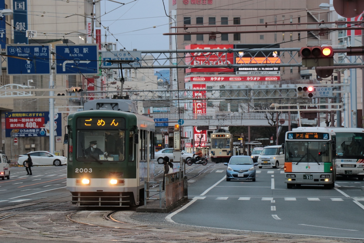 線名は松山市駅を起点に高浜線・横河原線と分かれていますがほぼ全ての列車が高浜~横河原を直通で結んでおり乗り換えなどの手間は基本的にありません。列車は2or3両で日中時間帯は全く問題ないのですが、夕方近くになってくると下校途中の学生や帰宅ラッシュにあたってしまい車内はかなりの混雑に。無人駅では乗務員が集札を行っていますが、基本的に改札口に近い方で対応するようなので出入口が進行方向前寄りなのに車掌へ乗車券類を持っていく必要はないようです。ただ、停車時間も限られているので手元に準備して降車時に手間取らないようにしておくくらいはしても良いかもしれません。