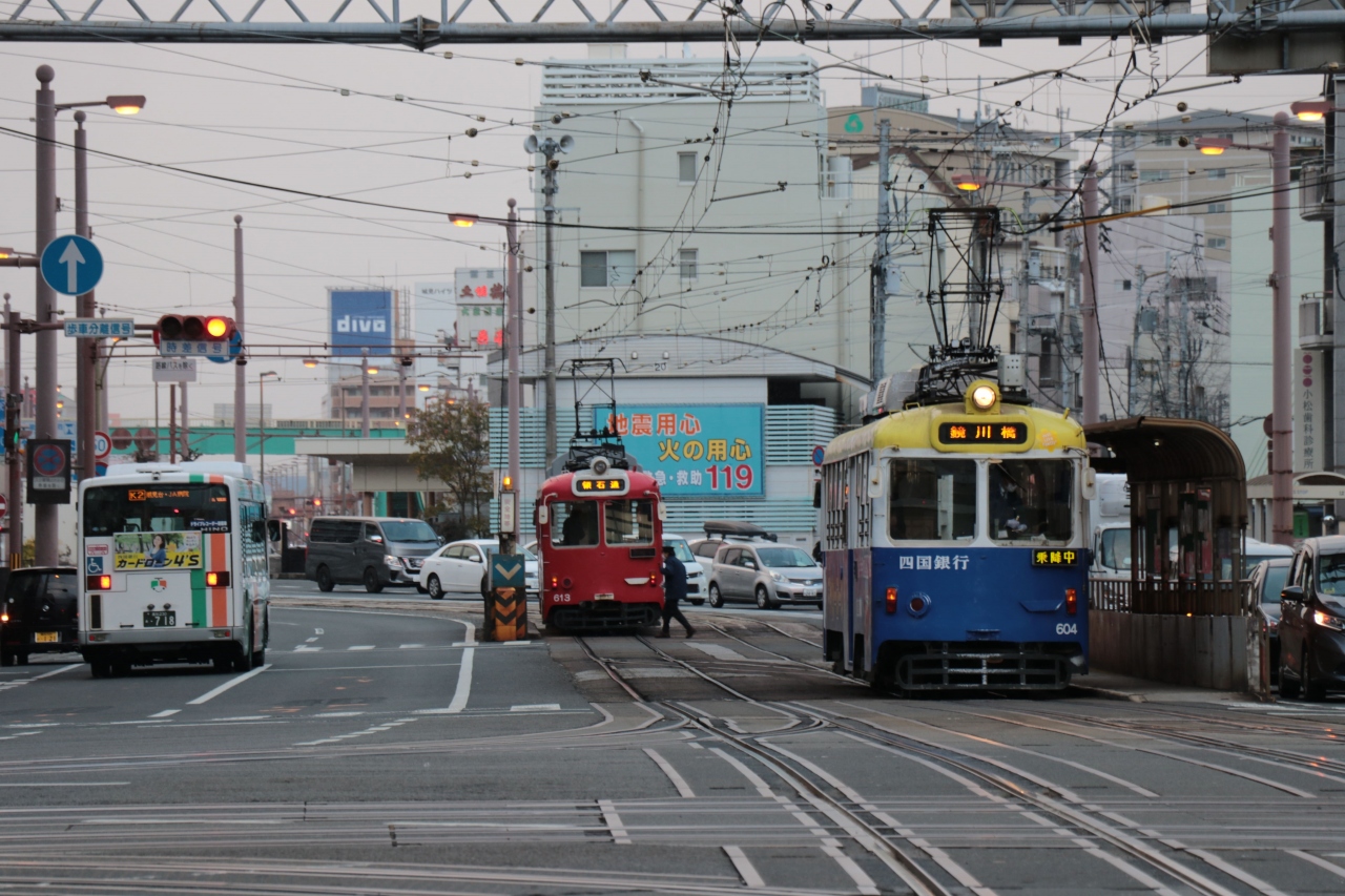 高知の市街地をガタゴトと進んでいく様子は周囲の景色とよくマッチしているとさでん交通の路面電車。国道と併走している箇所も多くありますが、半分以上は線路のみ敷かれている専用軌道となっており道路渋滞などによる影響はほぼ受けないようになっていることから定時性は高め。全列車が全区間走行するわけではなく、需要に応じた区間運行便もあり車内の混雑は緩和されているのかなと思いましたが、1両だけだと限界があるのか中央の最繁忙区間などは日中でもギュウギュウに近いような感じとなっていました。