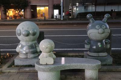 作者のやなせたかし氏の故郷ということも関係しているのか、JRではアンパンマン列車なるものが運行されており市内では道路脇に石像が複数設置されています。高知駅の南口から少し歩いた先にあった両者の石像。アニメ上では敵対する存在となっていますがこちらでは仲良く並んでおり子供連れなどにはピッタリの場所かもしれません。