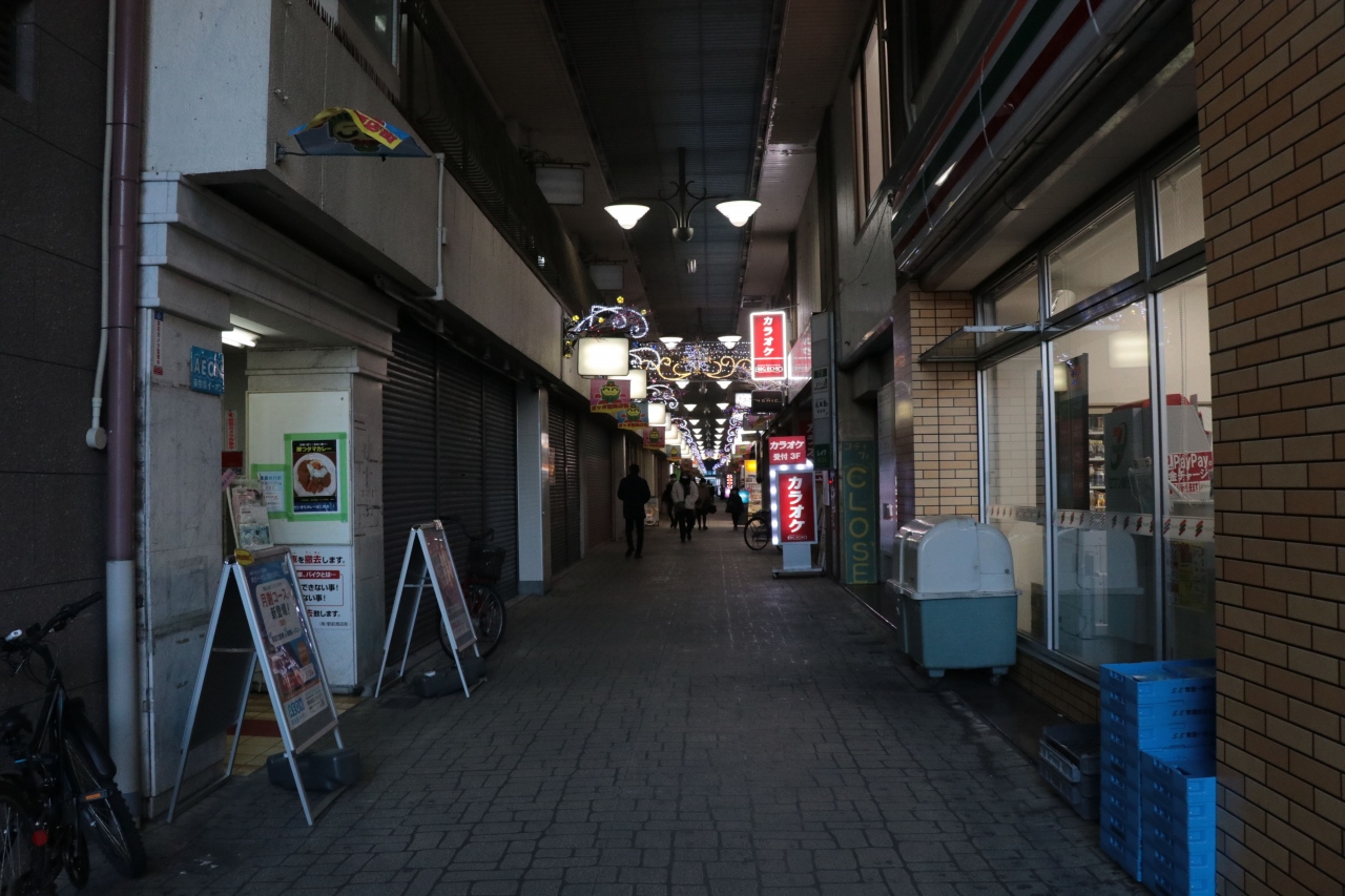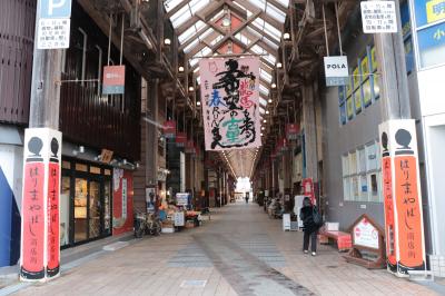 徳島駅を出て右側にある建物の合間にひっそりと(看板はかなり主張していますが)にある商店街となっています。アーケードとしてはそこそこの長さがありますが上の屋根が天窓ではなく電灯なので日中でも暗く感じる他、やっぱり空き店舗が目立ってしまうのかなという印象を受けました。そのせいか歩いている人も多くなく長い商店街の先の方まで見渡せてしまうようなタイミングも。。。 立地は申し分ないと思うのですが、この先が少しばかり心配な商店街です。