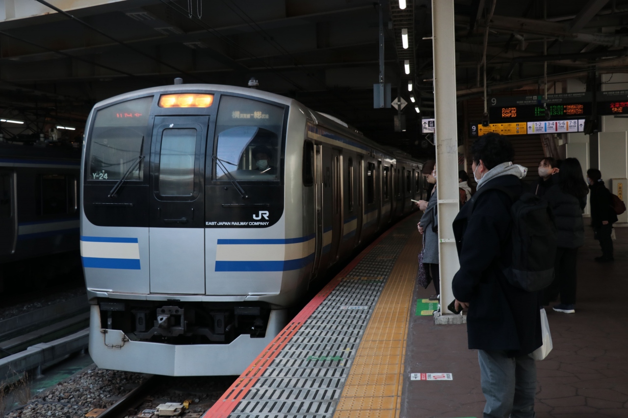 ローカルの地域輸送がメインとなる千葉以西の区間ですが、都心方面から(特急を除いても)佐倉行や成田空港行として11-15両の列車が直通運転を行っています。この区間だけで見ると絶対に供給過多だと思うのですが、需要は少なからずあるようで普通列車の車内には大きなキャリーケースを持った外国人旅行客の姿が。成田エクスプレスなど他にも交通手段はあると思うのですが・・・というツッコミはさておき、本数があまり多くない区間もあるので、利用の際は事前にダイヤをチェックしておくのが無難です。