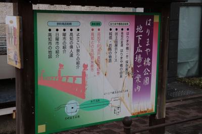 横断歩道のない県道がある関係でその間が地下通路で結ばれているのですが、その一角にははりまや橋の歴史や周辺地図を案内しているスペースがありこちらが広場となっているようです。はりまや橋が日本三大がっかり観光地と揶揄されるほどあっさりしたものなので、詳しい解説や歴史に触れたい方はこちらに来てみるのも悪くないのかもしれません。