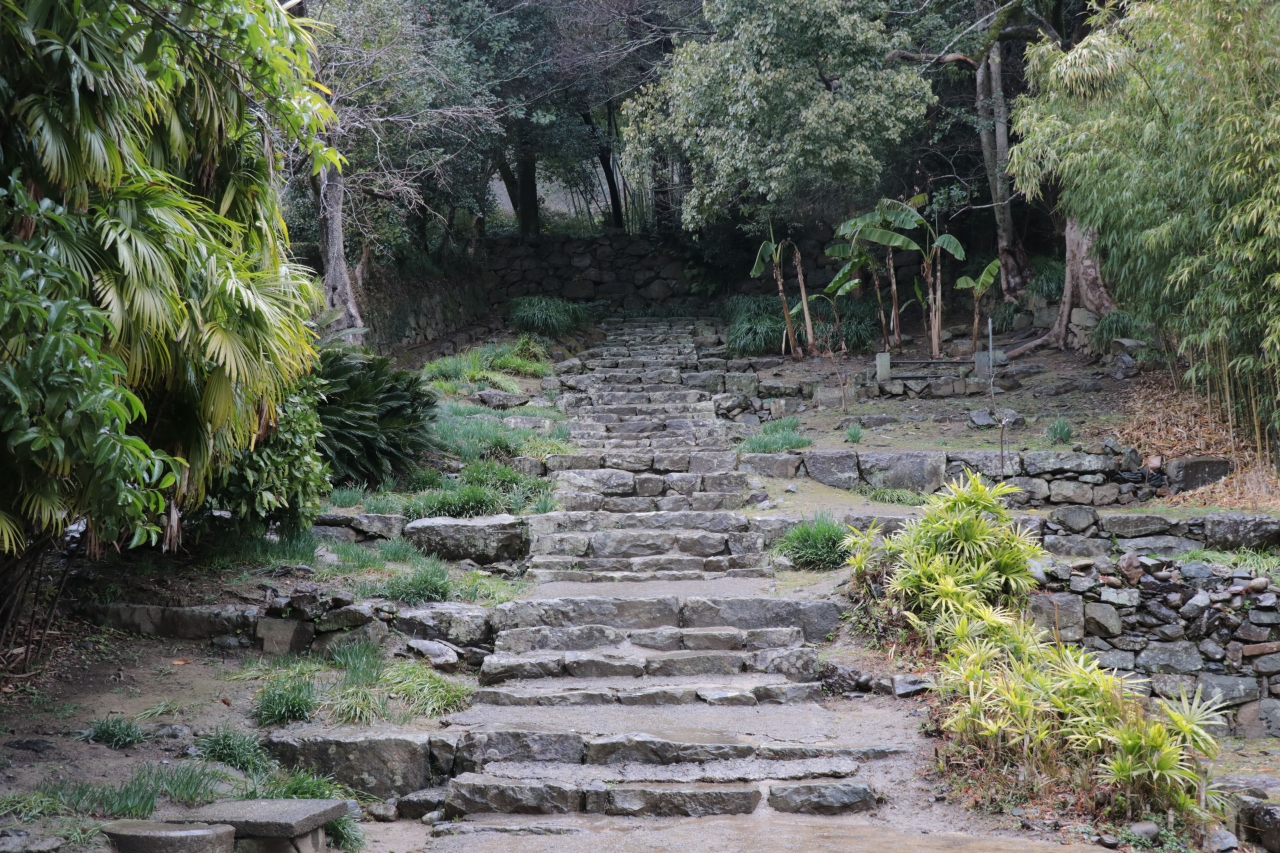 宇和島城を訪れる者に立ちはだかる急斜面。ここを登らなければならないのか・・・と心理的に感じさせられる場所に城を作ったのはすごいなと歴史上の人物に思いを馳せてしまうところです。木造で歴史は古く、1600年ごろから現存する可能性もあるとか。門の先はすぐ階段状になっていますがそれより手前は傾斜になっているだけなので短時間であれば車などの停車も問題なさそうです。脇には宇和島城についての解説もあるので、ここで勉強してからお城に向かってレッツゴー!