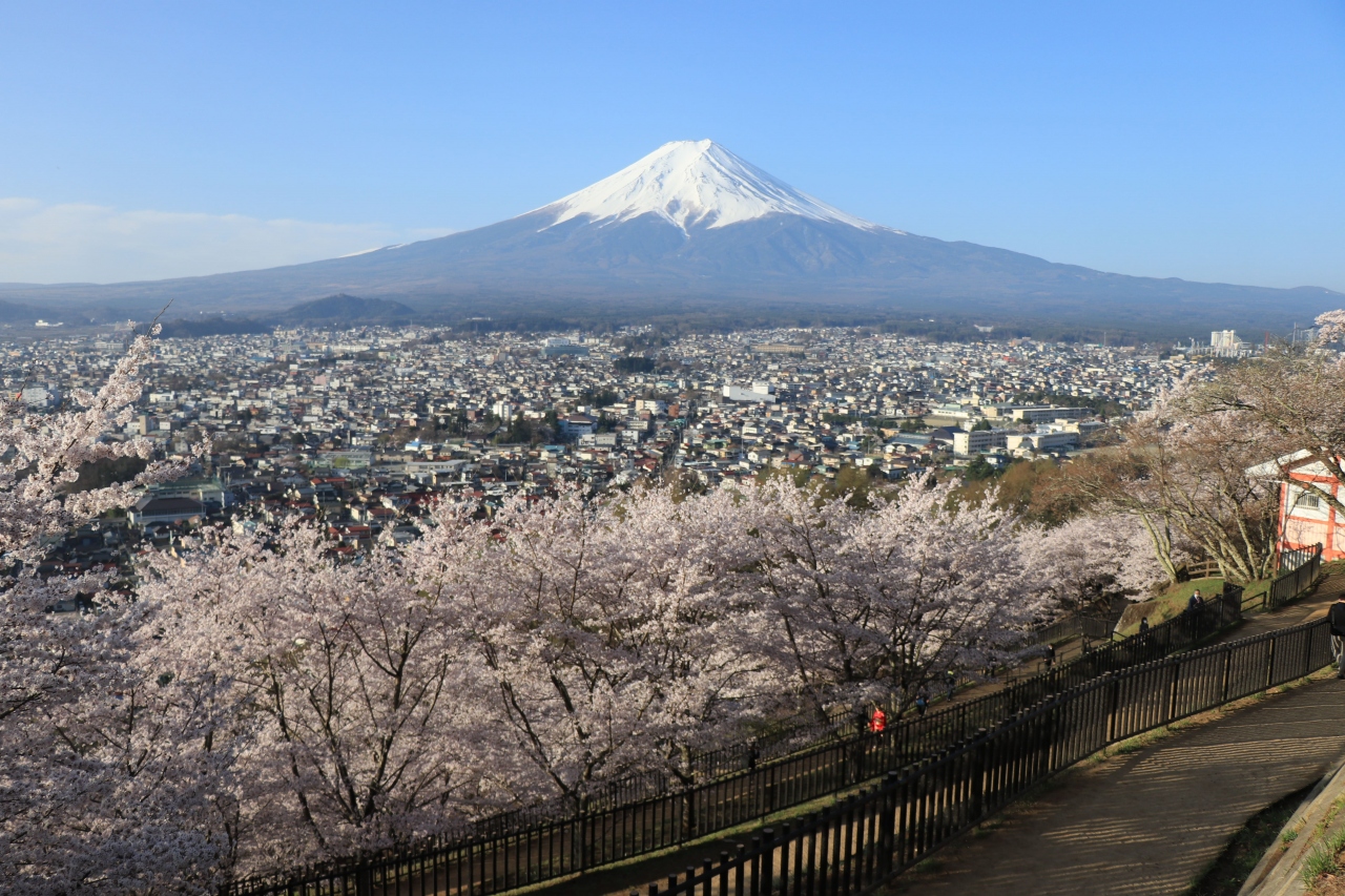 ここ数年、SNSなどを中心に有名となった富士山と忠霊塔と桜を合わせた構図の写真が撮れる場所となっています。公園の敷地は広くどこからでも桜と富士山の写真は撮ることができますが、有名な写真の構図は6-8時で予約制となっているようで、時間指定されたチケット(無料です)を持っていないとその場所に入れないようになっているので注意が必要。ただ、それ以外の時間でも時間入れ替え制で誰でも入ることができるようになっているので全く見れないということはなさそうです。(シーズン中は長蛇の列となり訪問日も入るまで1時間近く待つことになった人も)