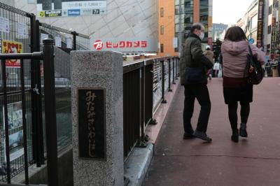 横浜駅西口から少し歩いた場所にある橋。すぐ隣のビブレ前部分も川の真上が広場となっており橋だけで見るとそこまで大したことはないのですが、歩行者が非常に多い場所で脇にある三差路は歩行者がいないタイミングがほとんどなく車の通行には難儀しそうです。