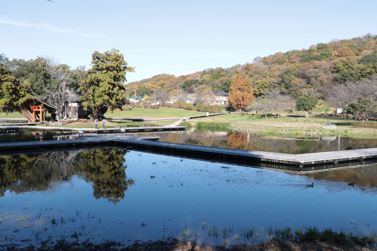 郊外にあるとはいえ、近くを県道が通るこの場所にこうした湿地帯が残されているとは思いもしませんでした。アクセスする道路がすれ違いも難しいような狭い道というだけではなく、駐車場も一般車が5台も置ければよいくらいのスペースしかありませんが、湿生地の部分には木道が架けられており気軽に散策することができる他、中央には神社も建てられており自由にお参りすることもできます。