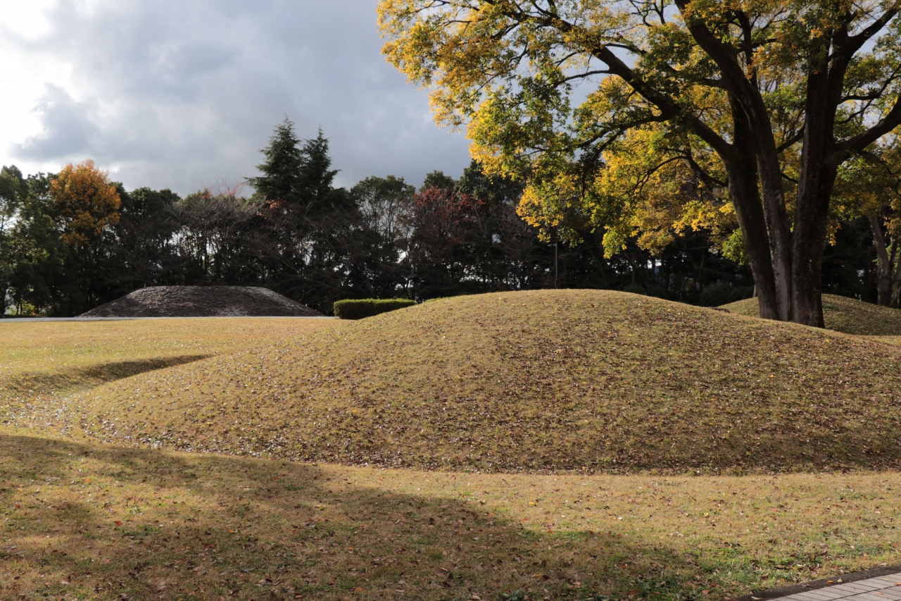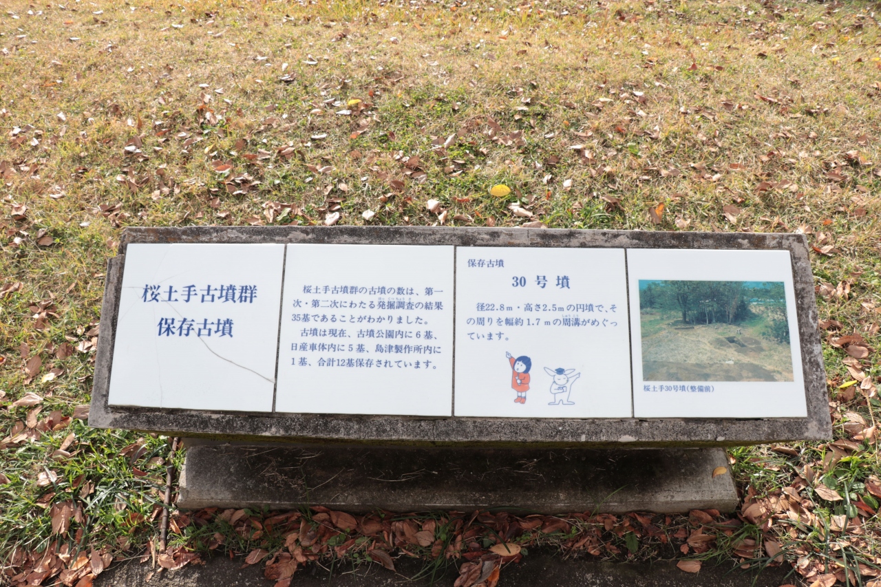 水無川のほとりにある公園となっています。復元・再建された古墳が3つほどあり地域住民の憩いの場となっています。春は桜などの花見が楽しめる他、(遊具などはないものの)小さい子供たちが走り回って遊ぶのにもうってつけの場所。一部コンクリート舗装されたところはありますが、基本的には草むらという感じなので自然の中で遊んでいる感じも味わえそうです。