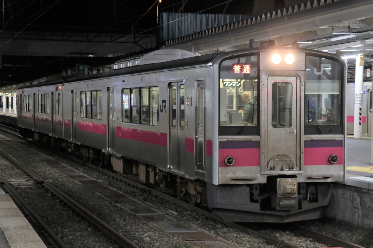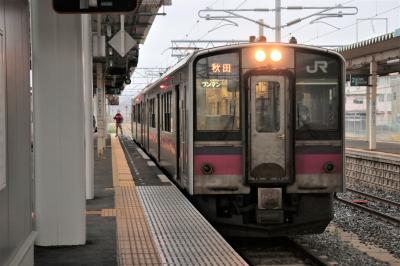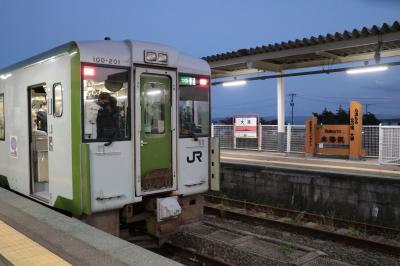 日本海側を縦断するように新潟~秋田を結んでいます。都市間移動の需要は多くないと思っていましたが、車両運用の都合なのか普通列車を含めて長距離ランナーは意外とあり乗り継ぎ面では楽に移動ができるのかなと感じます。ところどころ日本海を望む区間もありますが、普通列車は窓を背にしたロングシートのみで旅情という点ではちょっと寂しいかなと。特急が停まらない小さな駅では駅舎からホームまでの移動が階段のみというところも多く、大きな荷物を持っている人などは時間に余裕をもって到着しておきたいところです。