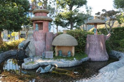 境港駅から水木しげるロードを歩いて一つ目の交差点脇 広場内にありました。ただ。道路時に面しているわけではなく中の方に足を踏み入れていく形となり少し見にくい場所にあるのでその点は注意が必要です。オブジェの像がいっぱいあり(私自身が鬼太郎に詳しくない中でも)知っているキャラクターの姿もあり誰でも楽しめる場所となっているのではないのでしょうか?