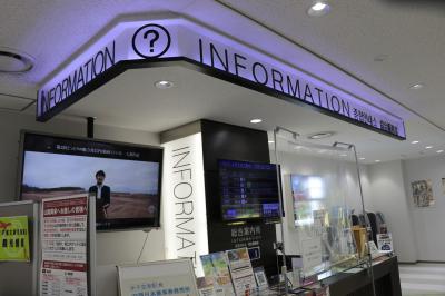 到着口を出るとすぐ左側にあるので迷うことはまずありません。バス時刻の案内や周辺エリアの観光パンフレットなどの配架以外にも、ターミナルから歩いていくことができるJR境港線の米子空港~米子/境港の乗車券発券も行っているとのこと。