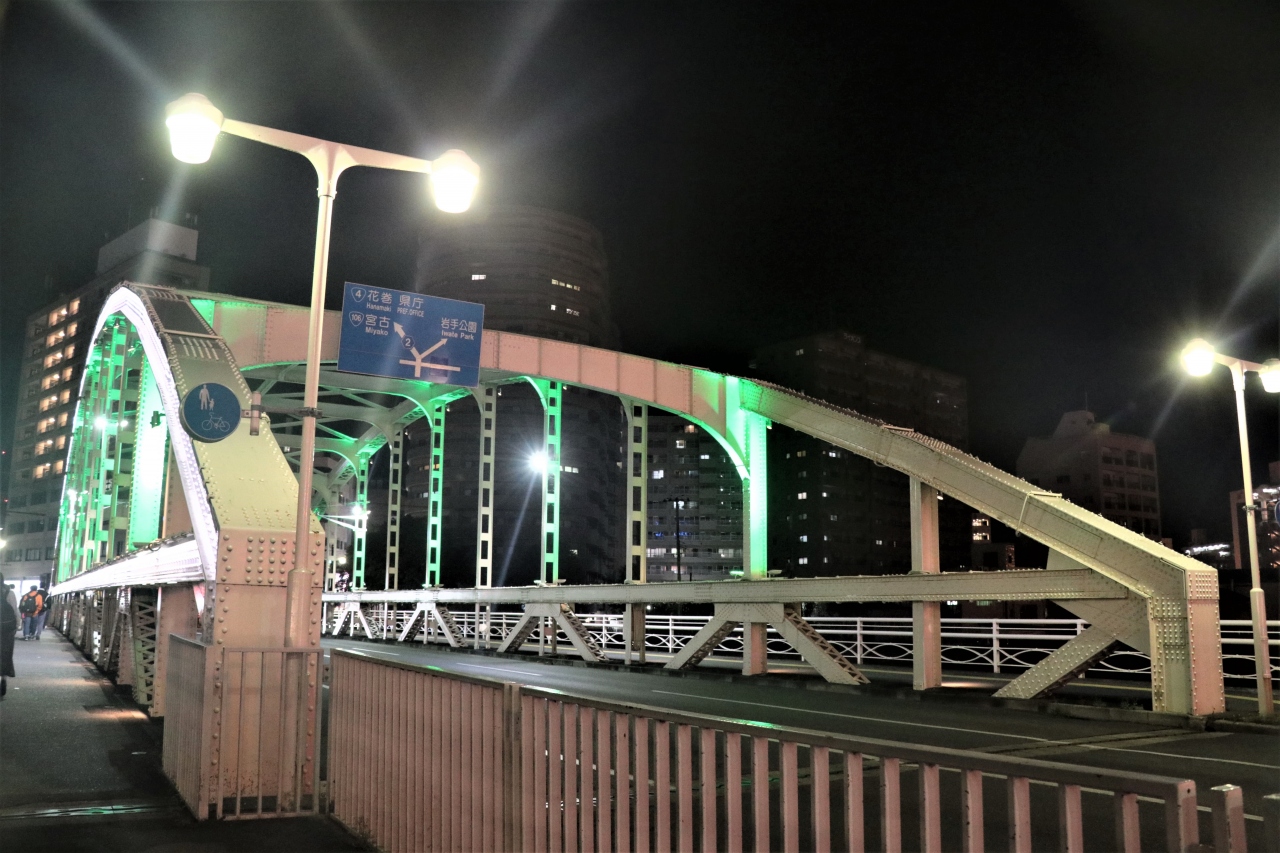 夜に通りかかったので白いトラス部分のライトが点いており暗い時間帯でも明るく目立っていました。車道がメインで歩道は暗くなっており通行の際は注意が必要です。