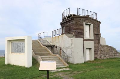 宗谷岬を背にして坂を登り、向かって左側一番奥のある遺構。明治時代の日露戦争時に完成したもののようでよく現代まで残っているなぁと感心してしまいました。上に登ることも可能となっており、昔の人はこうして海峡の安全を守っていたのかなと思いを馳せてみるのも良いかもしれません。レンガ(?)を綺麗に積んだ2階建てより少し低いくらいの高さで、元々丘陵の上にあり見晴らしは良いのですが、荒井に高い位置から見下ろすことでより遠くを視認できるようにしたのかもしれません。