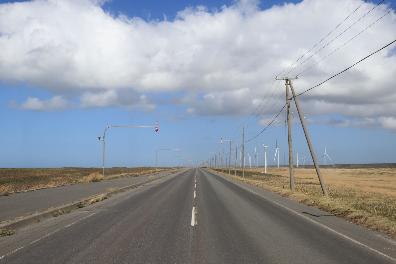 一面に広がる原野とひたすら続くまっすぐな道路。風力発電所も沿道にありいくつも並ぶ巨大な風車も見どころの一つとなっています。景色はまるでアメリカの映画に出てきそうな光景で近くまで来たら是非通ってほしいところです。平坦なところだけではなく一部にはカーブやアップダウンがある箇所もあり速度の出し過ぎは禁物。- 旅行時期
