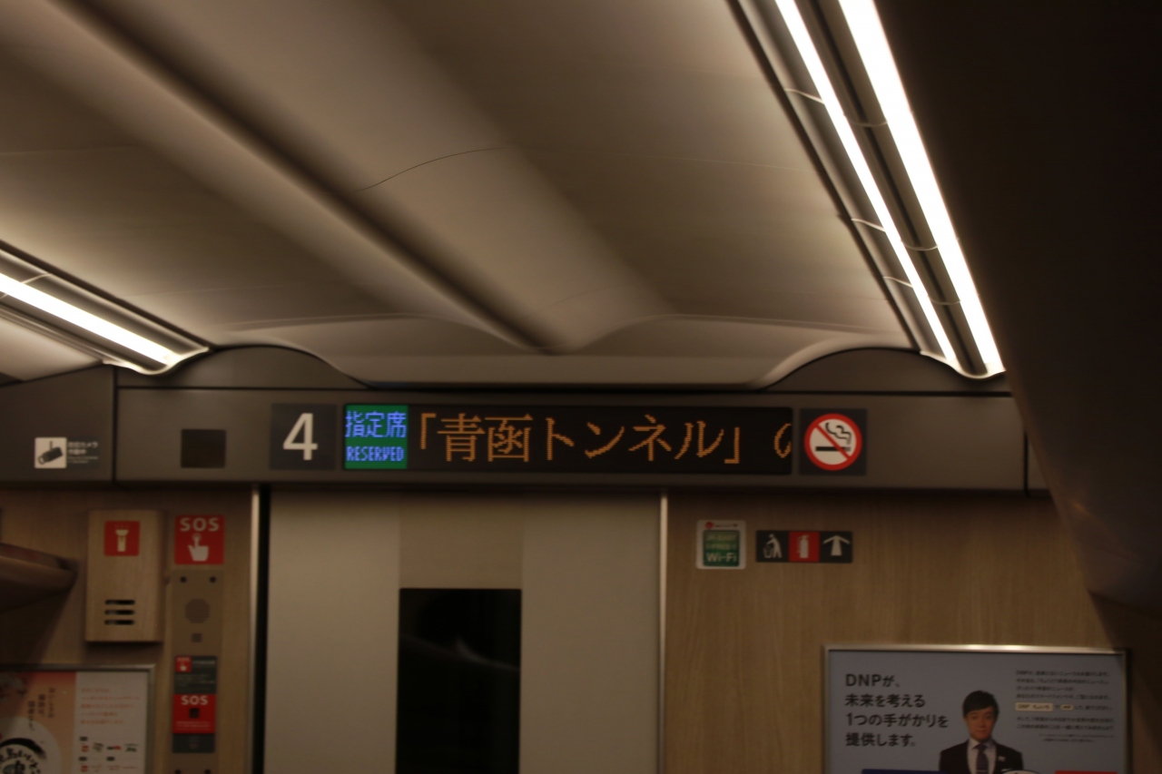 在来線が廃止され開業した北海道新幹線を利用して通過した青函トンネル。車内のLED表示器は盛り上げていましたが車内は乗客が少ないこともありシーンとしていました。前後にいくつもトンネルがありどれが本当のものなのか分からなくなりそうですが、車掌がトンネル進入時刻を放送してくれるので参考にすると良いかもしれません。