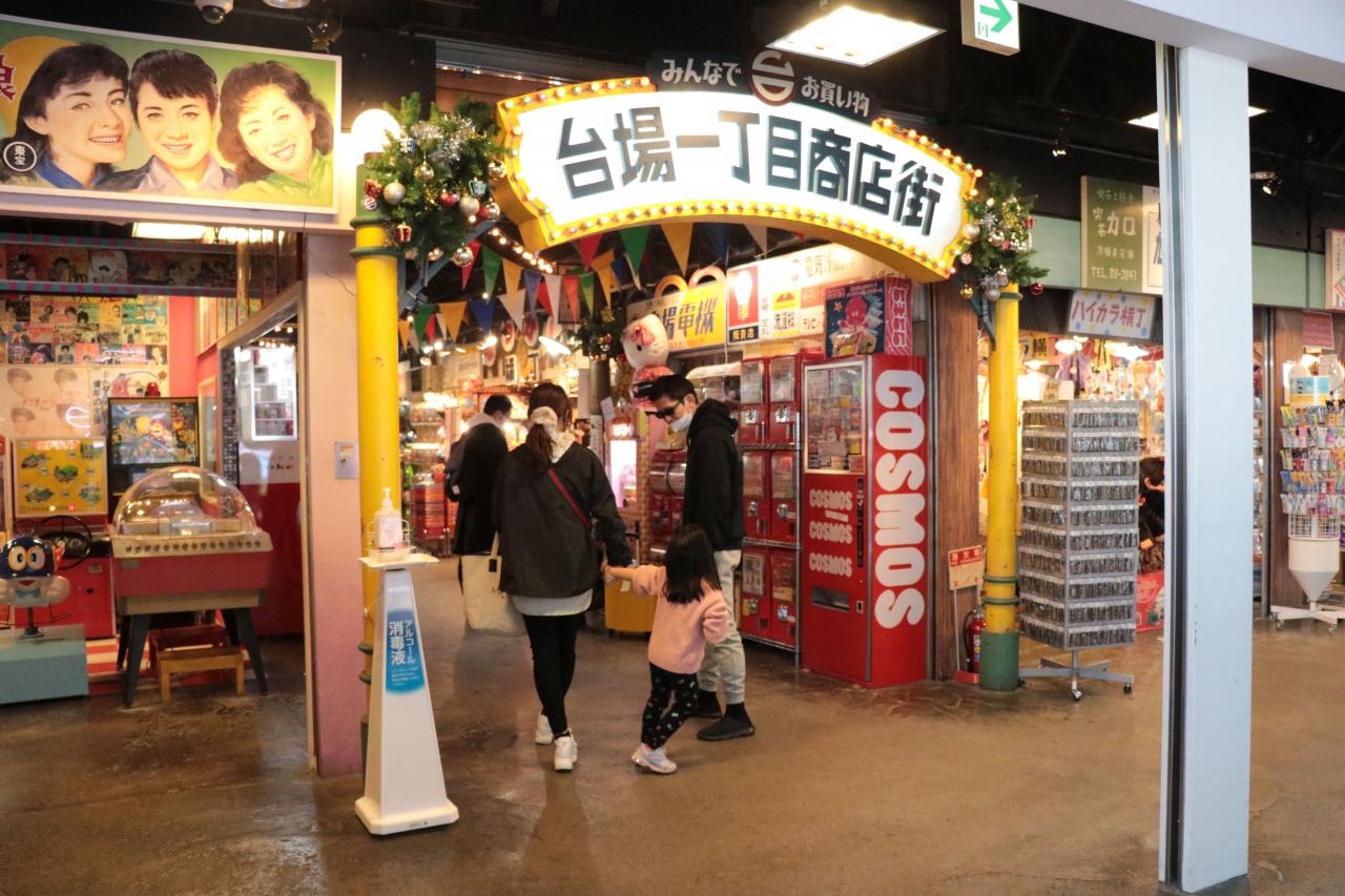 雑貨・射的場や駄菓子屋さんなどのレトロな雰囲気を味わえるほか、お化け屋敷や小さな舞台などもあり小さな子供から大人まで楽しめる場所となっています。週末の昼間時間帯ということもあり若い人から家族連れまでそこそこの人出となっていました。中央通路を挟んで左右にお店がギッシリあるのでのんびり見て回るだけでも楽しそうです。