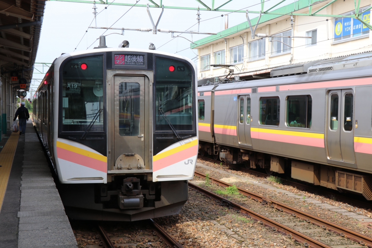 車両は新潟エリアの他路線でも使用されているE129系。全て窓を背にしたロングシートでも良いような気はしますが、空いている日中時間帯ならボックスシートで足を投げ出しゆったりと窓の外を流れる景色を眺めてみるのもよさそうです。- 旅行時期
