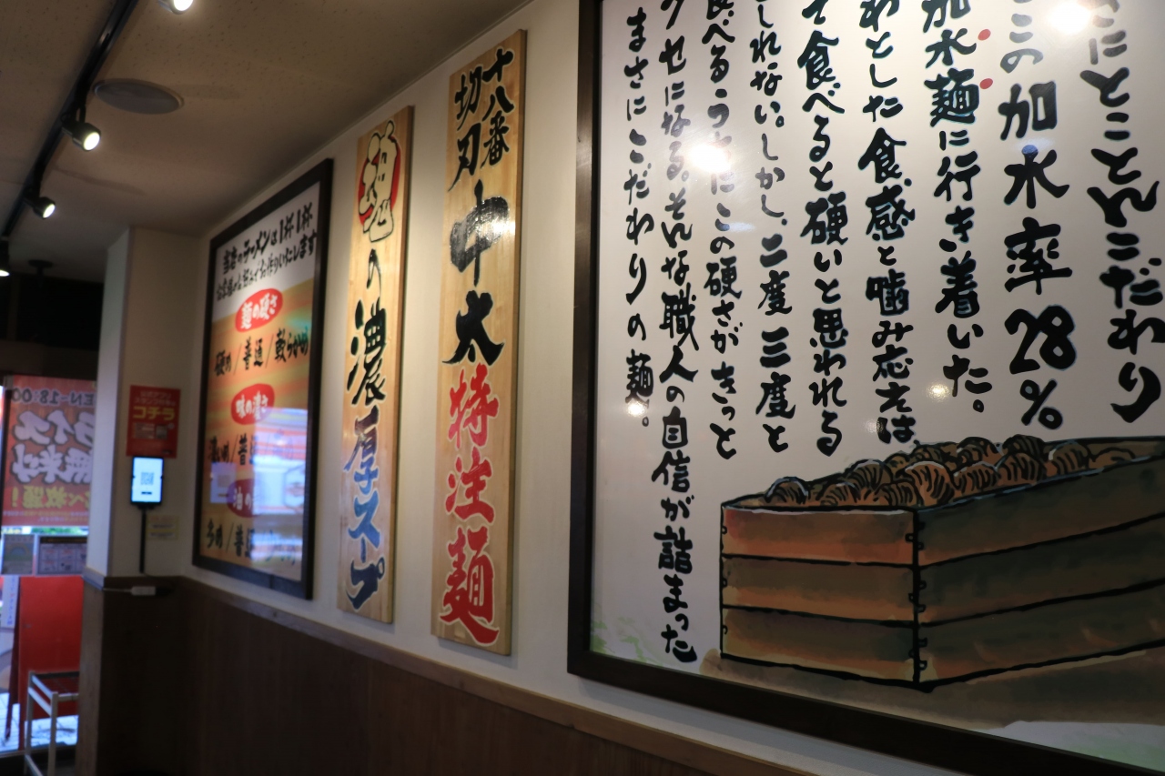 門前仲町駅からほど近い場所にある看板の装飾が目立つ壱角家。個人的に家系ラーメンへの来訪時には呪文のように唱えている「脂の量は少な目で!」という形で今回もお願いしましたが、スープは思ったよりも脂っこい感じでお腹にダメージが来る感覚でした。