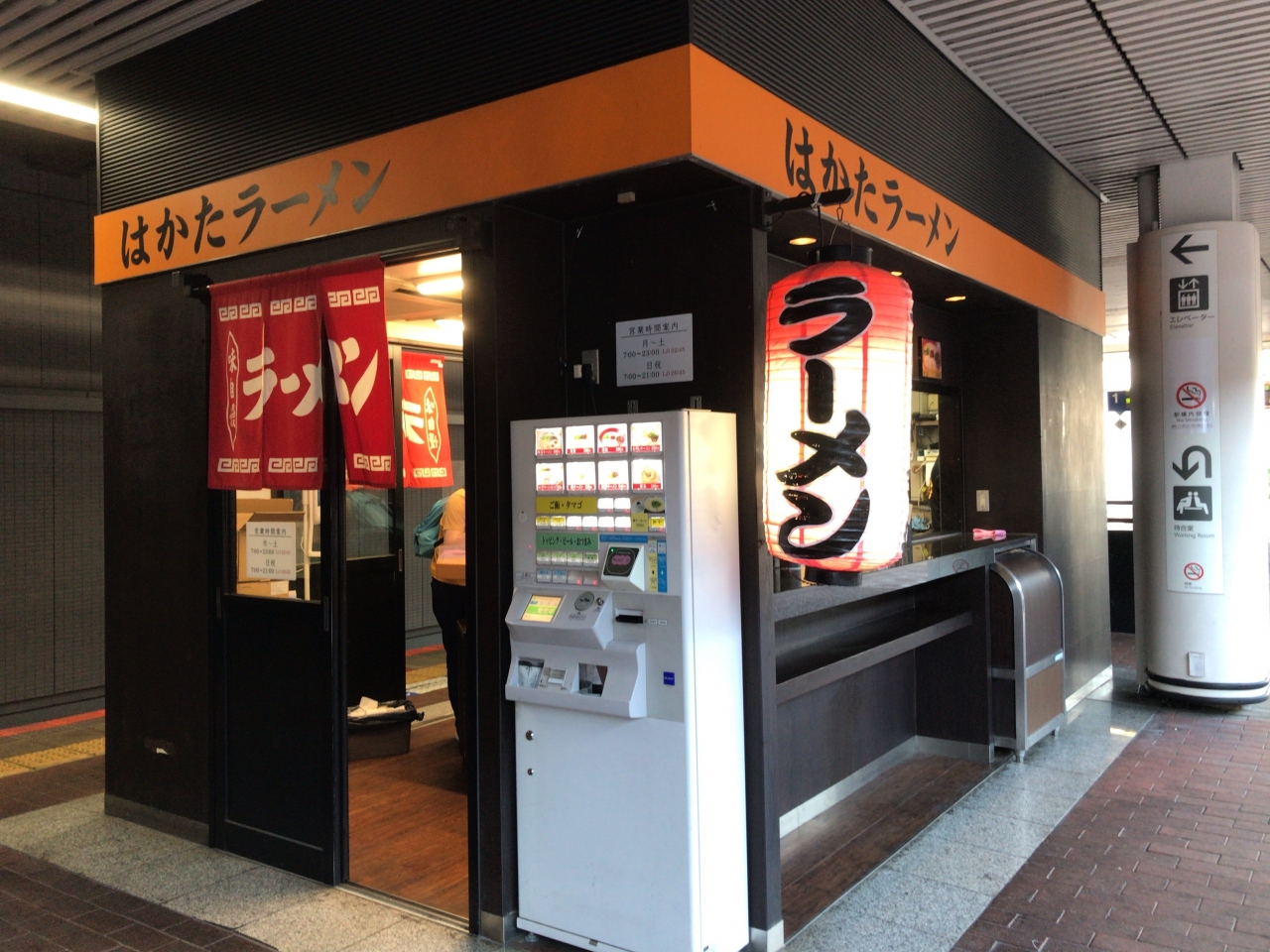 博多とんこつラーメンを手頃に安価な価格でいただくことができます。味は詳しく説明できないので他の方に譲りますが、ホーム先端にあり脇から立ち上がる湯気は食欲をそそられるところです。ラーメン以外にはおにぎりもあるので量が足りないなという方は追加で注文するのも良さげ。ラーメンもあるので締めの一杯で合わせて食べるのも美味しそうです。素ラーメンだとちょっと寂しいので他のラーメンやトッピング品などを追加していくと良いかもしれません。
