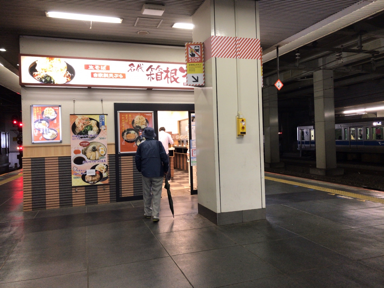 下りホームの小田原・藤沢寄りの先端部にある駅そば。限られたスペースで営業していることもあり店内は立ち席のみとなっています。昼時などはかなり混雑していますが、回転率は高く乗り換えの合間などで利用している人もいるのではないのでしょうか?