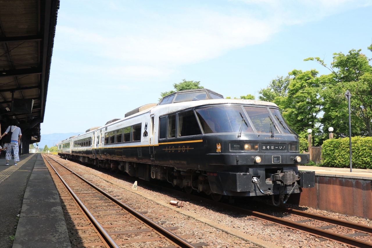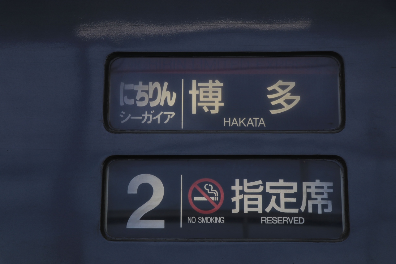 宮崎空港~博多という東九州をぐるっと一回りする運行形態。全区間乗り通す人はほぼいないと思われますが、自販機などを含めて車内販売の類は一切ないので事前の購入は必須です。乗車区間にもよりますが、博多や小倉などの都市部から山間部・別府湾や日向灘などの海岸線まで変化に富んだ景色を楽しむことができました。全線通して6時間近く乗る列車というのも寝台特急やクルーズトレインを除ければここくらいなのでしょうか?