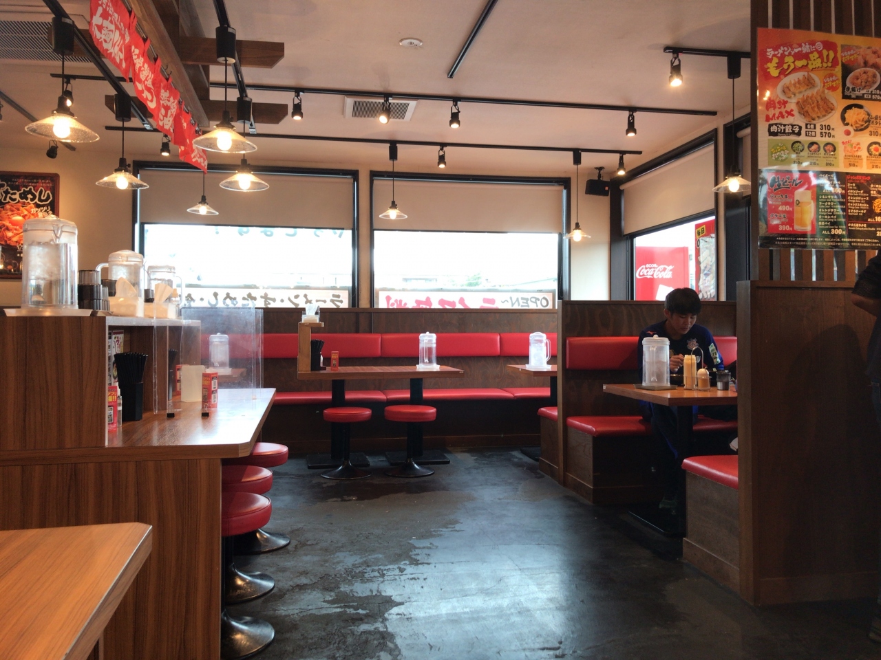 国道沿いにありアクセスは良好です。上り線側に面していますが、すぐ隣に交差点もあるので対向車線からの入場もそこまで大変ではないかなといったところでしょうか? 駐車場は少し狭い気もしなくありませんが、訪問時は昼下がりの時間帯ということもあり空いていました。店内はカウンター・テーブル席とあり一人でも複数人でも気軽に入れるようになっています。