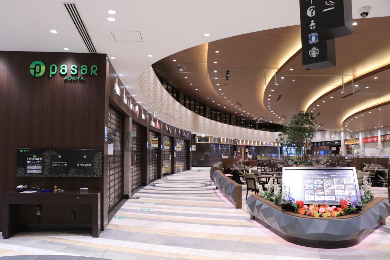 建物内は24時間営業のレストランや土産物屋さんがあり特段困ることはなし。スタバやカフェなどもあり日中は多くの人で賑わいを見せるのではないでしょうか? ハイウェイスタンプは建物向かって右側出入り口のお手洗いの脇付近にあります。- 旅行時期