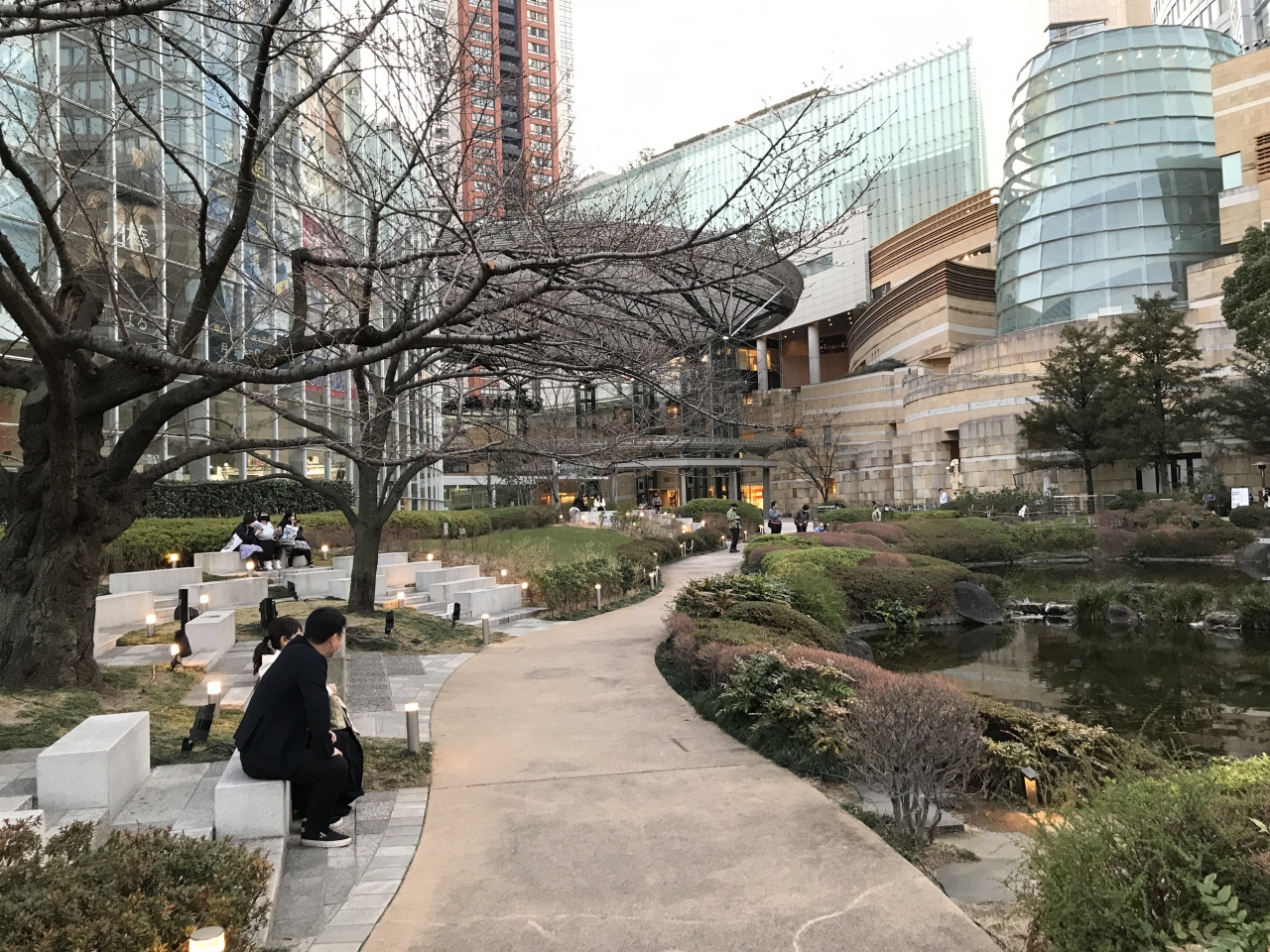 冬から春への季節の変わり目ということもあり一部の木には葉がないような状態でしたが、都内の一等地という面でも自然を感じられる貴重な場所には変わりありません。無料で誰でも散策できるほか、六本木ヒルズやテレビ朝日とも隣接しているので仕事の合間やショッピングのついでに立ち寄るのも楽しそうです。