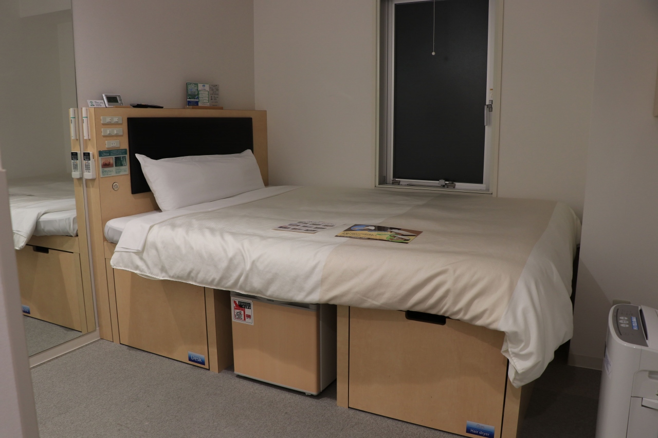 部屋はベッドの高さやデスクをベッド下から出すタイプなど少し変わった部屋ではありましたが特に問題なく利用することができました。部屋着や好みの枕はフロント前から持参する形となっているので忘れないように注意が必要です。コンセントをはじめとした各種スイッチ類も枕元に集約されているので寝る直前でも快適に過ごせるほか、備え付けの歯磨き粉を使わなかった場合フロントでお菓子を頂けるなどのサービスもあるので気になる方は持って行ってみるのも面白いかもしれません。