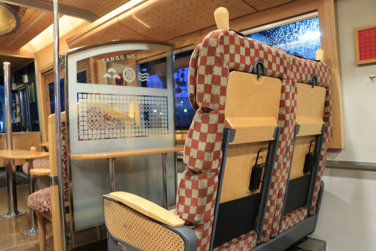 京都丹後鉄道が所有している特急型車両はすべてこの「丹後の海」車両となっており、外観ははやりの豪華列車っぽく乗るのを躊躇しそうですが、豊岡付近の末端区間は普通乗車券だけで乗れる区間もあり乗り得列車と言えるかもしれません。2両編成が基本のようですが、特急列車同士で連結を行い4両で運用されることもありサイドにある行先表示には気を付けて乗る必要がありそうです。