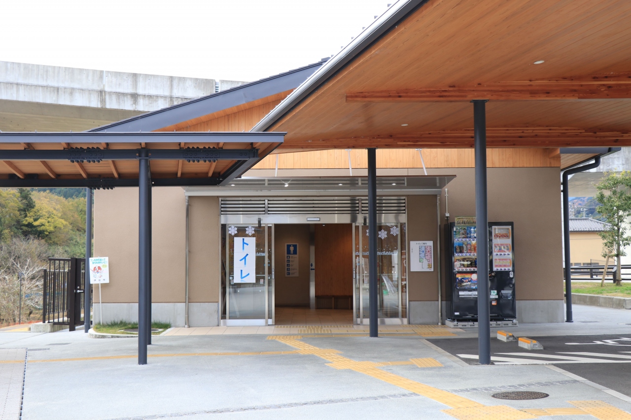 開業したのが最近なのかお手洗いの建物も含めて新しく、綺麗で使いやすいです。中の売店では野菜などの食料品のほか地域の土産物もいくらか置いてあり眺めるだけでも楽しめるかも。道の駅スタンプはメインの建物入り口正面付近に置いてありました。- 旅行時期