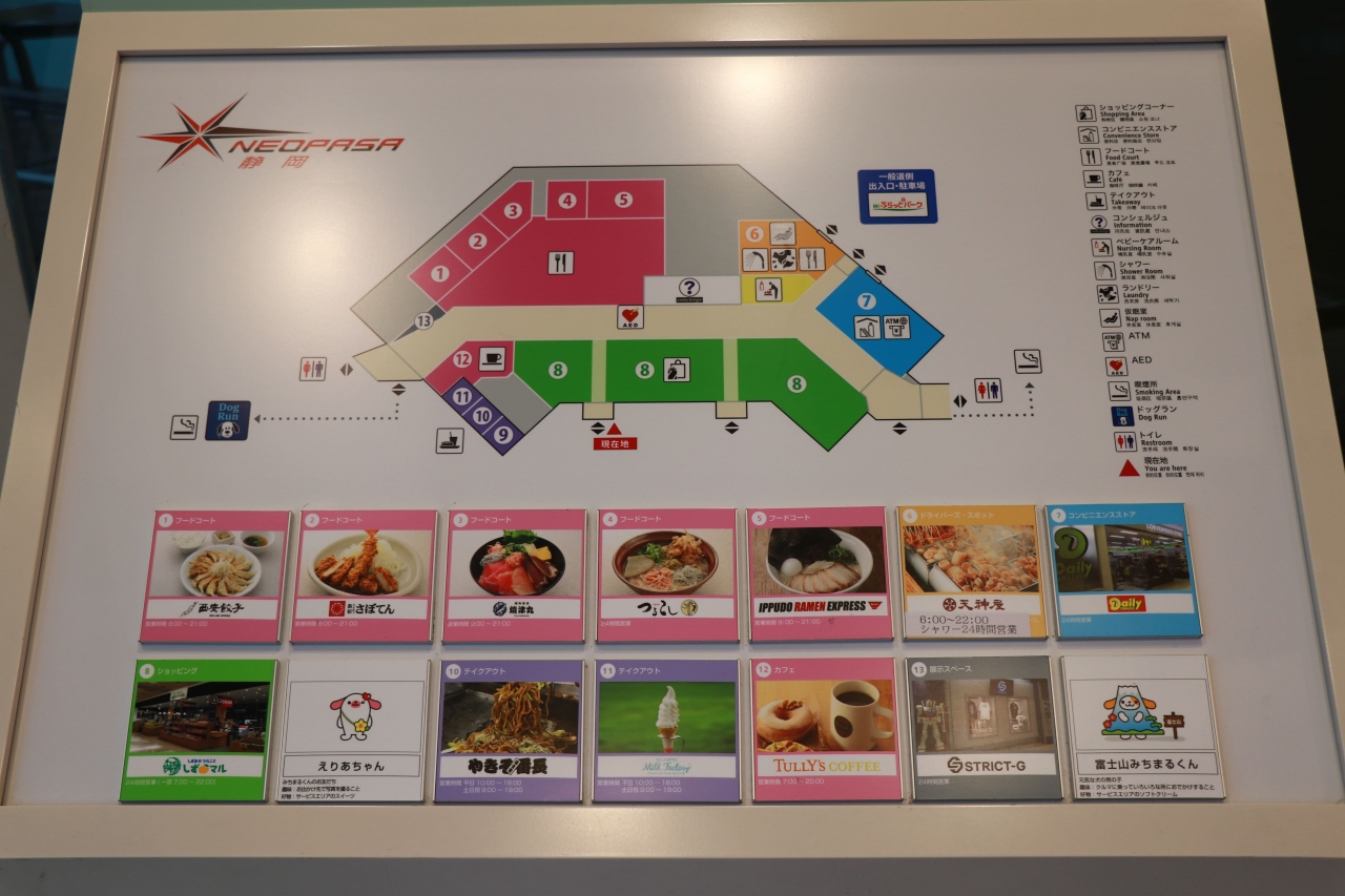 建物内はフードコートを中心として静岡圏の土産物、他にレストランや出店もあり充実しているなと感じたところです。各店舗で営業時間が異なるのでお目当てのものがある場合は注意が必要です。