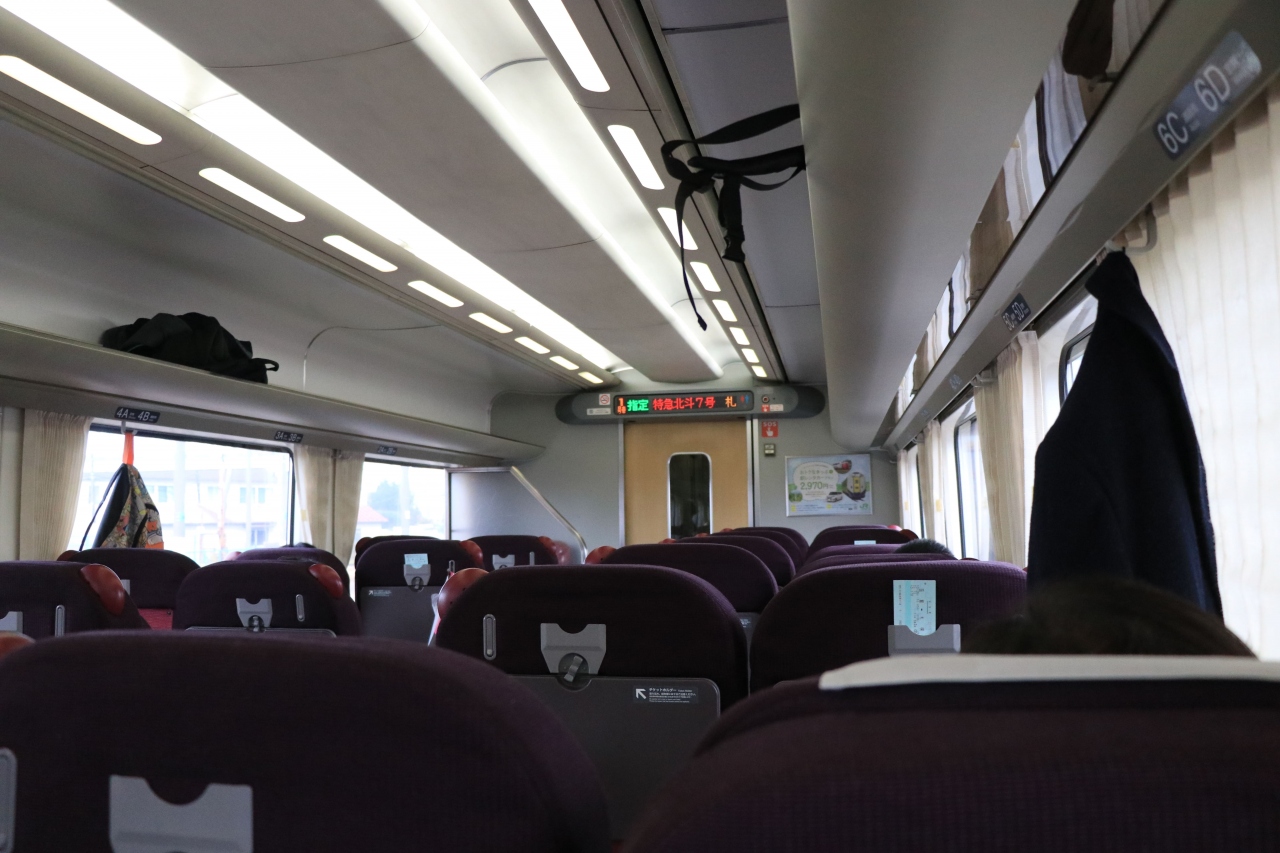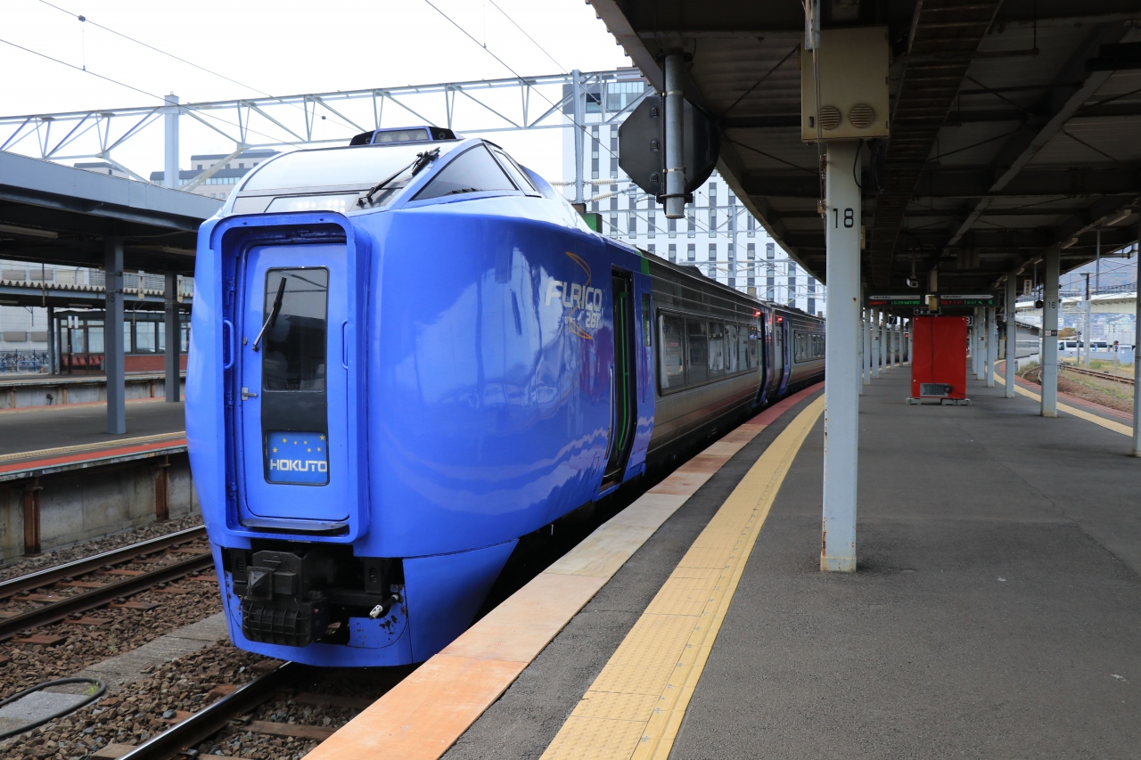 函館~札幌を通しで利用すると3時間半ほどかかりますが、車内販売はないので食事や飲料などは事前の購入を忘れずにしておきたいところです。大沼や噴火湾、樽前山や新千歳空港など車窓は豪華で乗車時間は長く感じますが、退屈はしない・・・ことはなく、やっぱり鉄道でこの距離は長いなぁと感じてしまうところです。一連の不祥事を経て減速ダイヤとなり以前よりも速度は落ちたものの、それでも森以北はそんなことを一切感じさせない快走を見せてくれます。