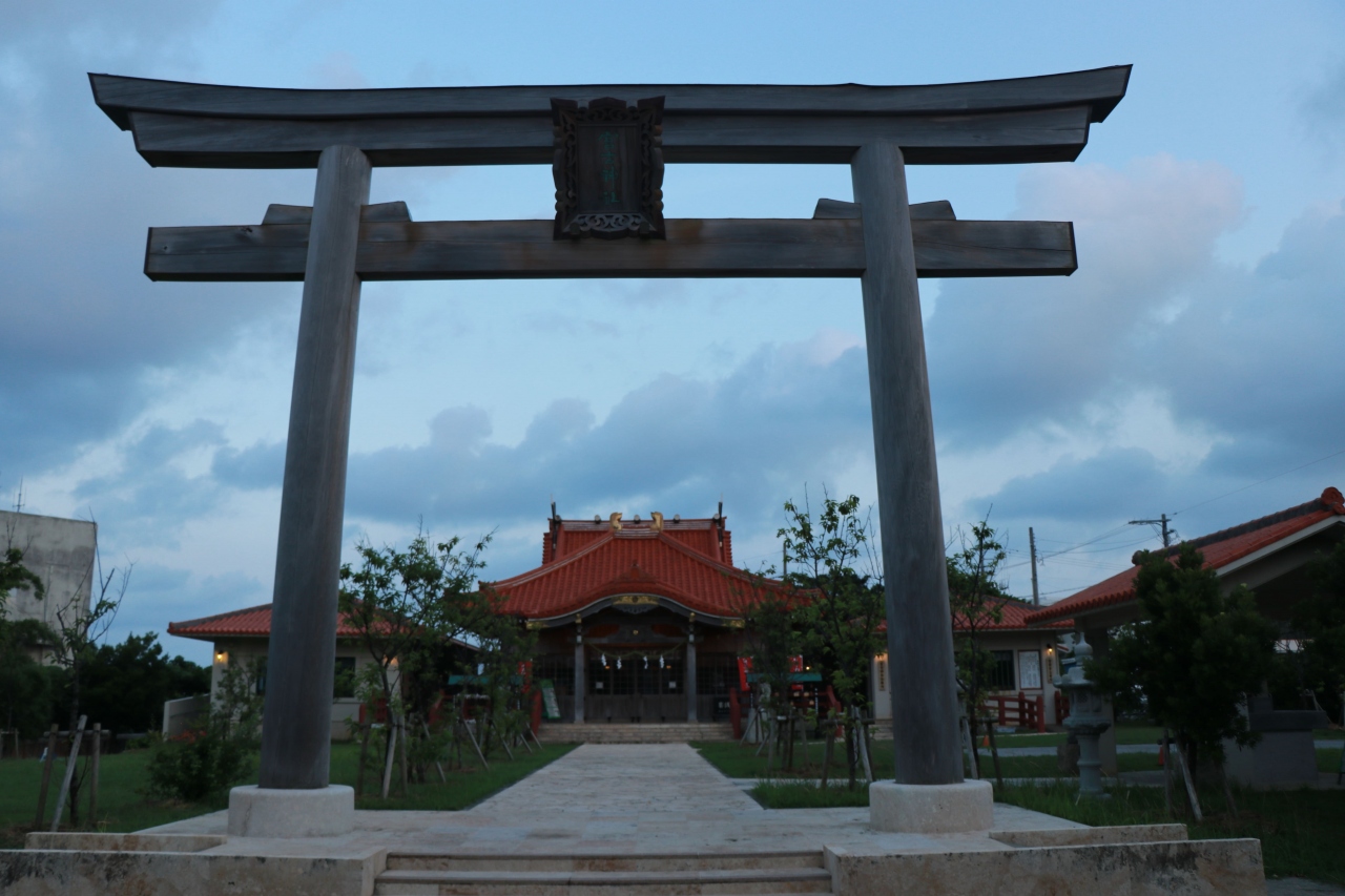 市役所近くにある非常に立派な神社です。鳥居をはじめ狛犬の役割を務めている(?)や瓦屋根など沖縄らしさを感じられる場所の一つかなと思います。朝早い時間での訪問でしたが、隣接している(くらい近くにある)漲水御嶽とセットで参拝される方がちらほら見受けられ信仰心の高さを垣間見たような気がしました。本殿や鳥居が非常に大きくお金がかかっていそうだなという邪心をもった私は心が汚いんだなと(苦笑)