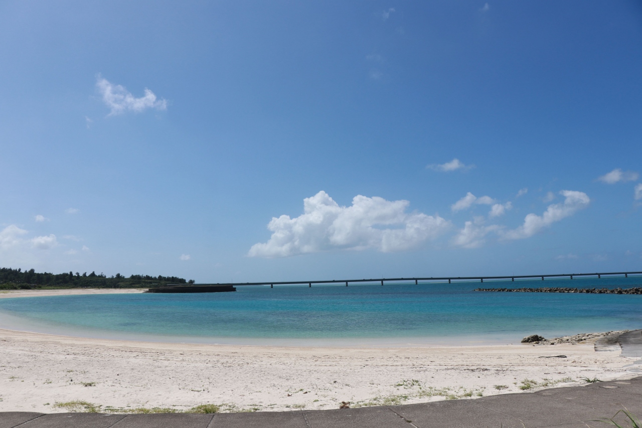 伊良部大橋を目の前にするビーチで、湾ではありませんが内海なので波も穏やかで小さな子供などでも安心して遊べるのかなといったところでしょうか?