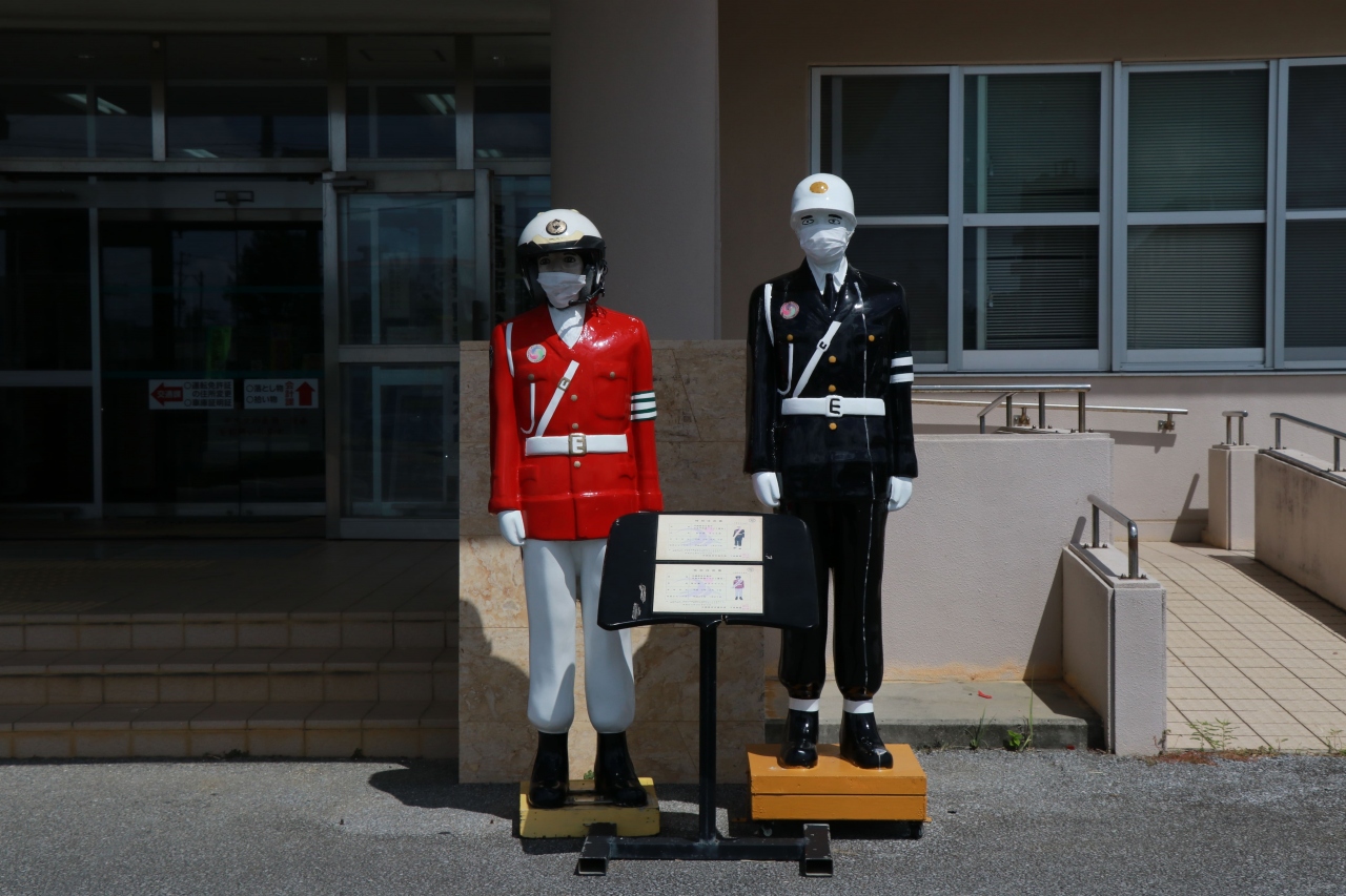 警察署前のまもる君の横には「まる子ちゃん」なるキャラクターも。二人で並んでツーショットに収まることができます。島内各地で遭遇するので記念写真は容易ですが交通の妨げにならないように注意をお願いします。- 旅行時期