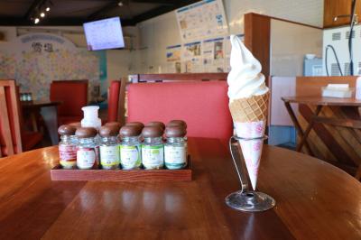 名物の(?)ソフトクリームを頂きましたが、思ったよりもしょっぱくなく、でも全く香りがしないわけでもなく美味しくいただくことができました。そのほか、土産物も多く置いてあり。同じ商品でも一部は安くなっているものもあってなんでだ?と思ったら賞味期限が近づいているものらしい。気になる方は要チェックです!- 旅行時期