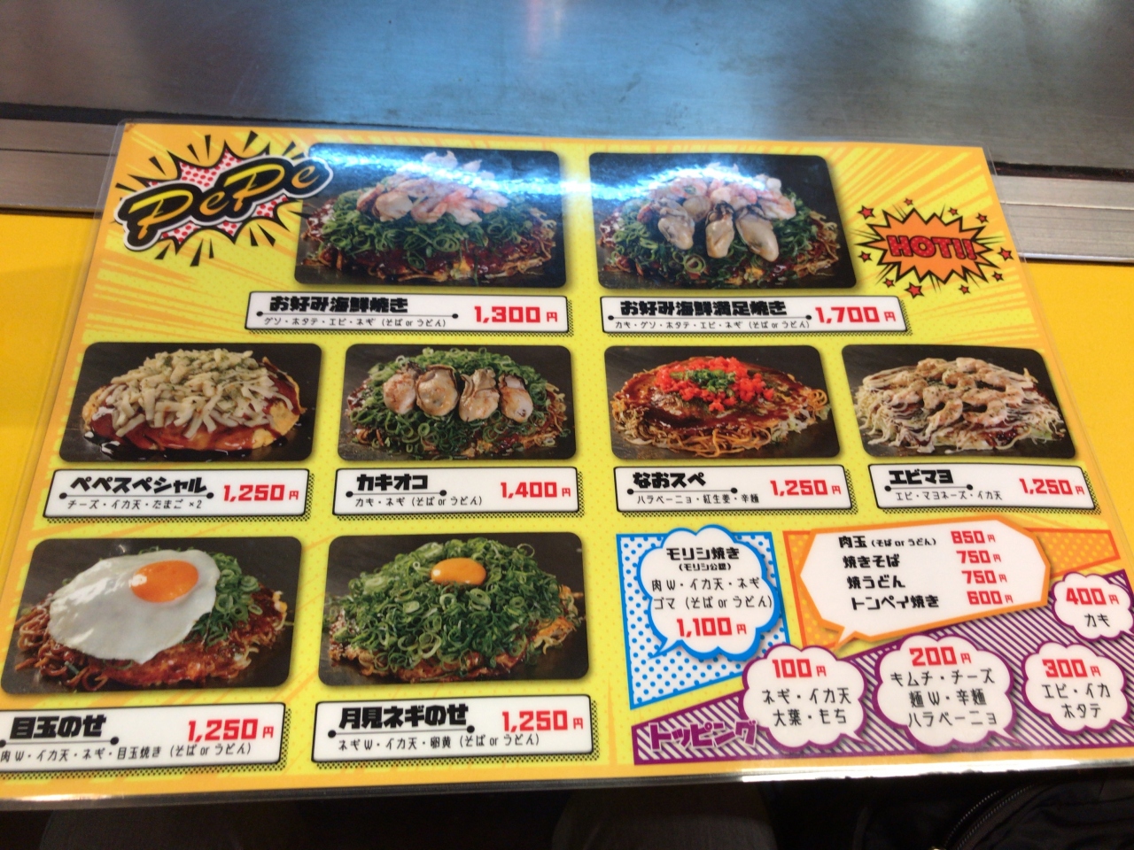 観光客・地元客が入り乱れる屋台のような場所になっています。在来線口からは少しだけ歩きますが5分ほどなのでそこまで気にする必要はなさそうです。店舗数はそれなりにあるので事前に決めておいても良いですし、グルっと回ってから選ぶのでもよいかもしれません。店舗によってある程度の独自性がありメニューに個性が出ているところなども注目すると面白いかも。どの店舗もカウンター式なので、鉄板を目の前にしてお好み焼きが作られていく様子をじっくり観察することができます。