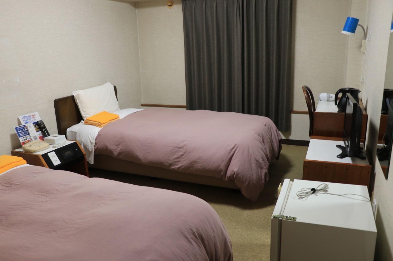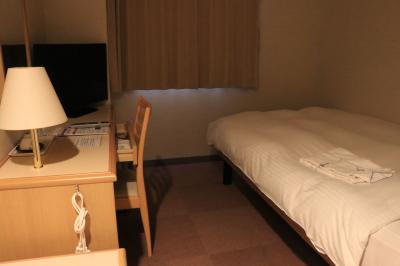 温泉街にあるビジネスホテルで素泊まりの設定もあり、他よりも安価で泊まることができますが、シングルの部屋はなく全てツイン以上。それでも一人利用のプランも設定されており(急遽の利用だったので1万円以上しましたが)当日予約で利用することができました。