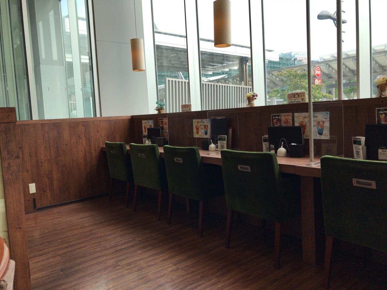 フードコートのように集まってはいるのですが、各店で仕切りがあるので別店舗のものを同じ場所で食べることはできないので注意が必要です。一部、市内店舗より高いものもありますが空港という場所で手軽に頂けることも考えると使い勝手は悪くなさそうですね。- 旅行時期