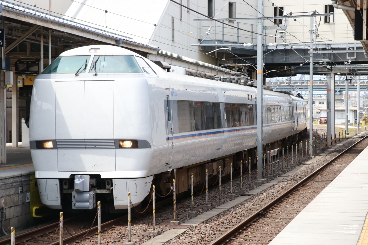 以前は新潟県の直江津まであったものが北陸新幹線の開業により金沢まで短縮、このあとも同新幹線の延伸により敦賀までになってしまう予定。現在は金沢など北陸各地から大阪・京都や米原・名古屋という都市間輸送を特急でになっているため日中時間帯でもそこそこの頻度で特急列車が運行されていますが、こうした景色が見られるのも長くはありません。