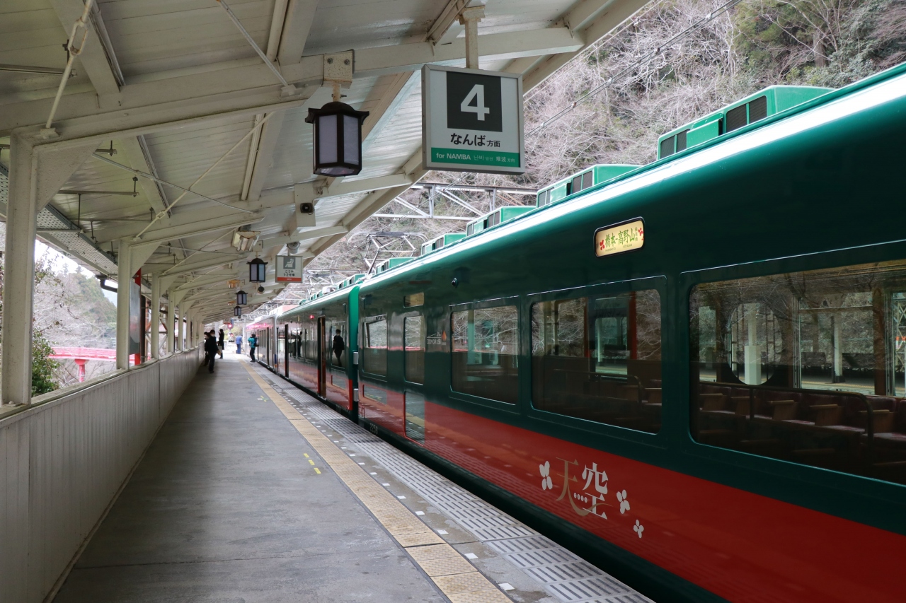 高野山へと向かう場合に利用するケースが多々あるかと思いますが、なんばからは急行列車で橋本まで1時間、そこから各停に乗り換えて40分ほどと意外と距離があります。また、橋本での乗り継ぎ時間もスムーズに来ないこともあるので値段を差し引いても特急でビューンと一直線に向かうのも悪くないように思えます。