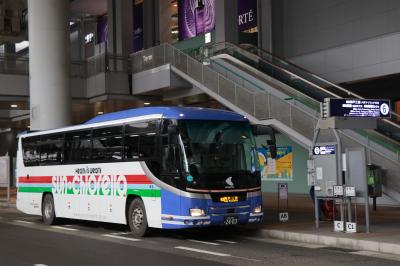 到着口の目の前からバスは出発。券売機や窓口でチケットは購入できるので時間には余裕を持って乗り場に到着しておくと良いかもしれません。昨今の情勢も影響しているのかバス便も減便や運休がなされているので時間の確認は絶対に必要です。乗る直前までお客さんがいない状態でしたが駆け込みで1組乗り込んで乗客2人で出発して行ったものもあり今後が心配です・・・