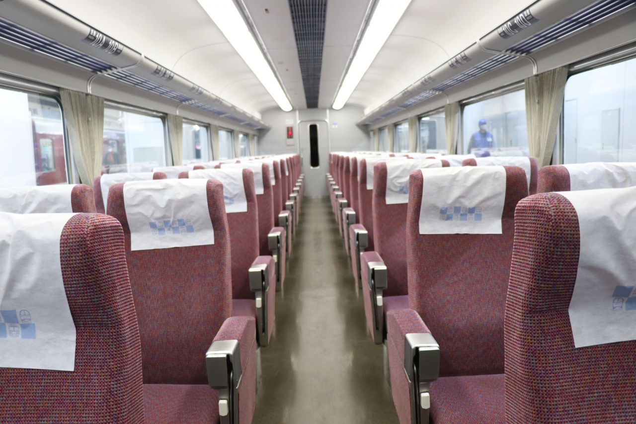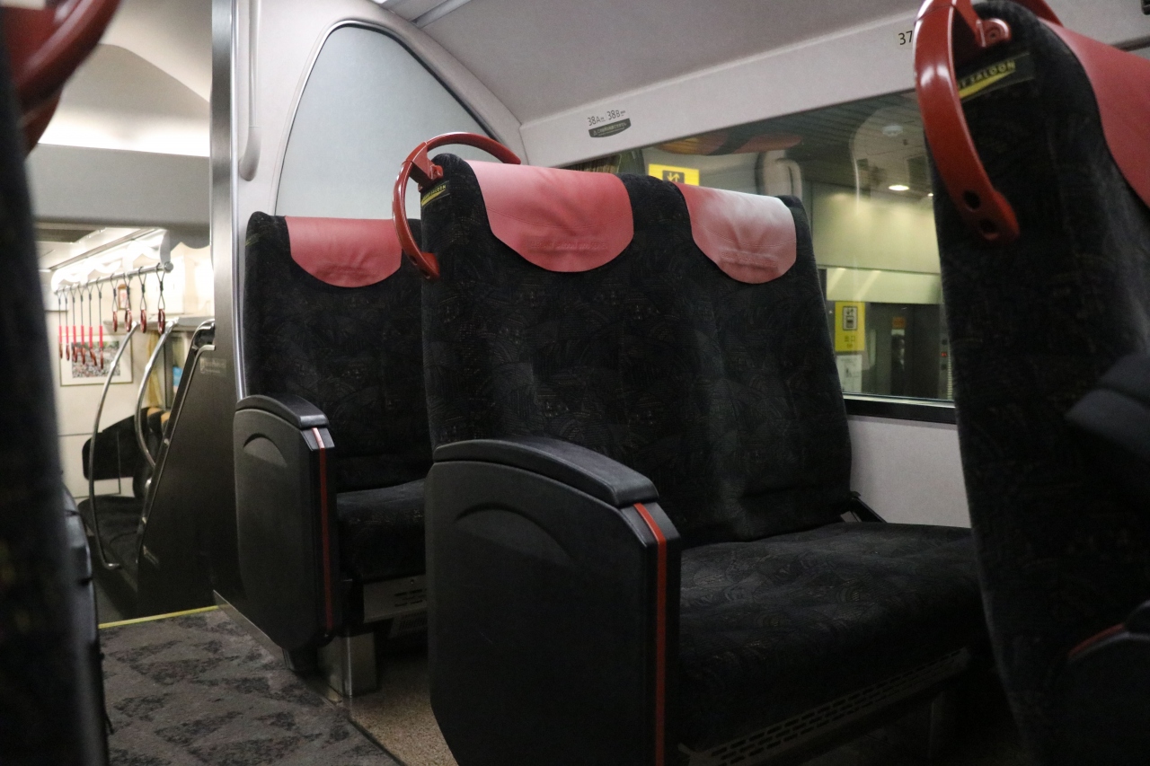 基本は3ドアですが特急の一部列車が2つドアとなっており電光掲示板と足元の乗車位置目標はしっかり確認しておくのが良さげです。京都~大阪だと京阪・JR・阪急と激戦区になっていますが、後者二つはともかく京阪に関して言えば少し離れたところを走っているので意外と需要はあるのかもしれません。2つドアの特急だとラッシュ時はどうしても乗降効率が落ちてしまいますが、車端部の座席を除き進行方向に向かって座るタイプの席なので座れれば快適に移動できるのは利点ですね。