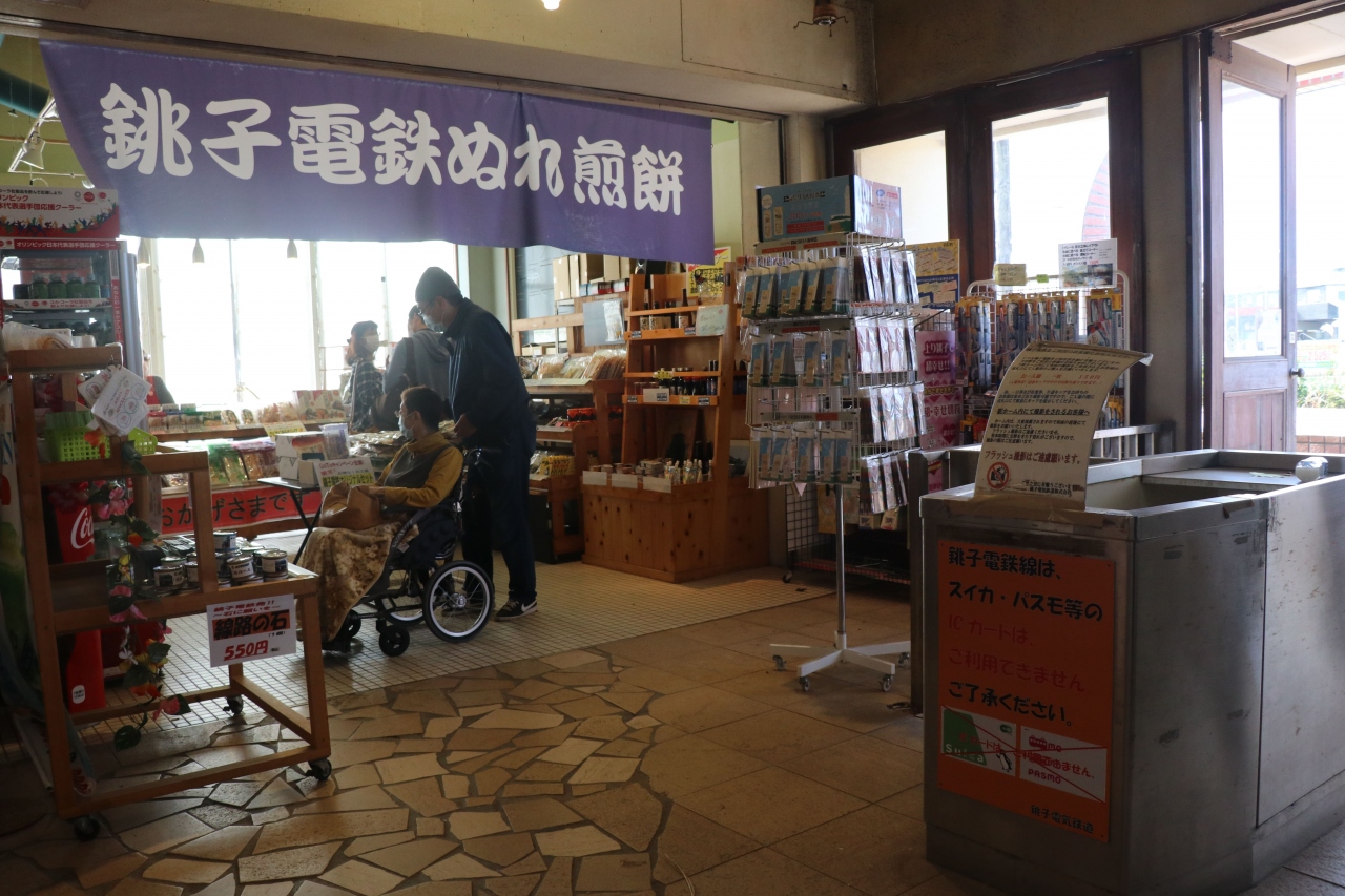 駐車場もあり車での訪問もできますが、支援も兼ねて是非列車で訪れたいところです。訪問時は週末でしたが、お客さんの姿もそこそこありメディア効果は大きいんだなぁと実感。品揃えとしては名物(?)のまずい棒やぬれ煎餅など広く知られているものを中心に多くの商品が並べられていました。食べたかった鯛焼き屋さんは休業中でした・・・