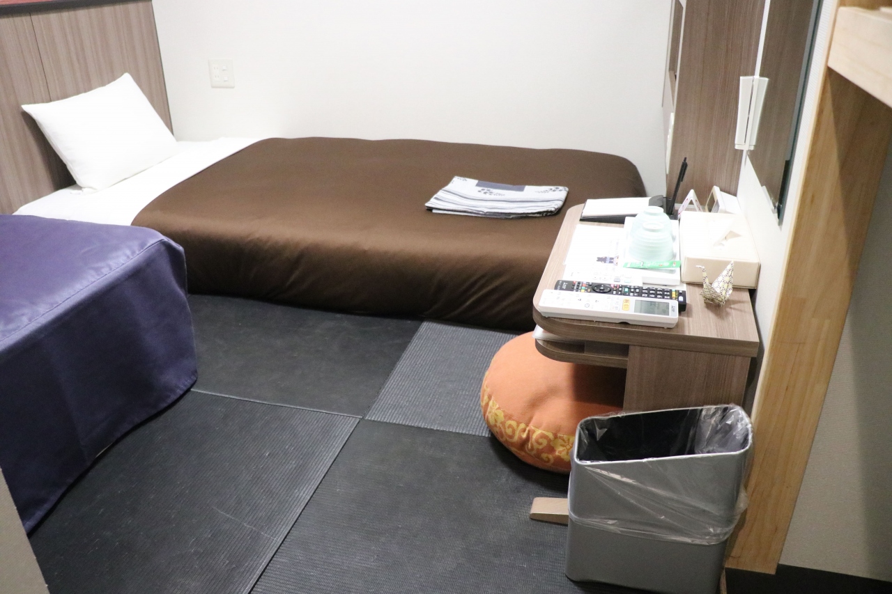 清水五条の改札を出てから徒歩2-3分という好立地で、目の前の通りにバス停もあるので色々なところに向かいやすい場所です。入口部分が洒落ており身構えてしまいましたが、中は普通のビジネスホテル。ベッドが低いのがちょっとだけ気になりましたが、内装も綺麗でリーズナブルな価格。コンパクトな作りで一人利用にはちょうど良い感じでした。