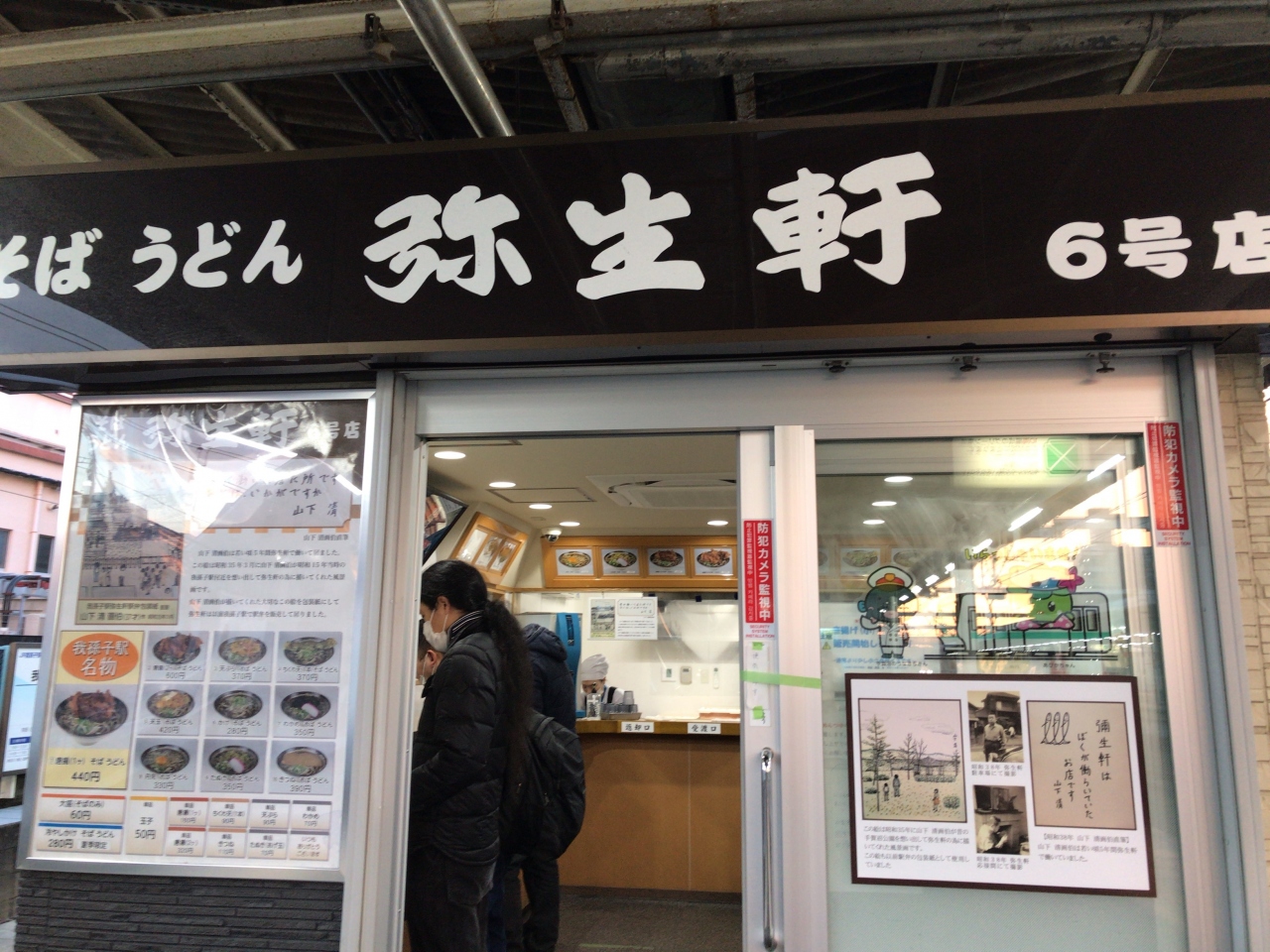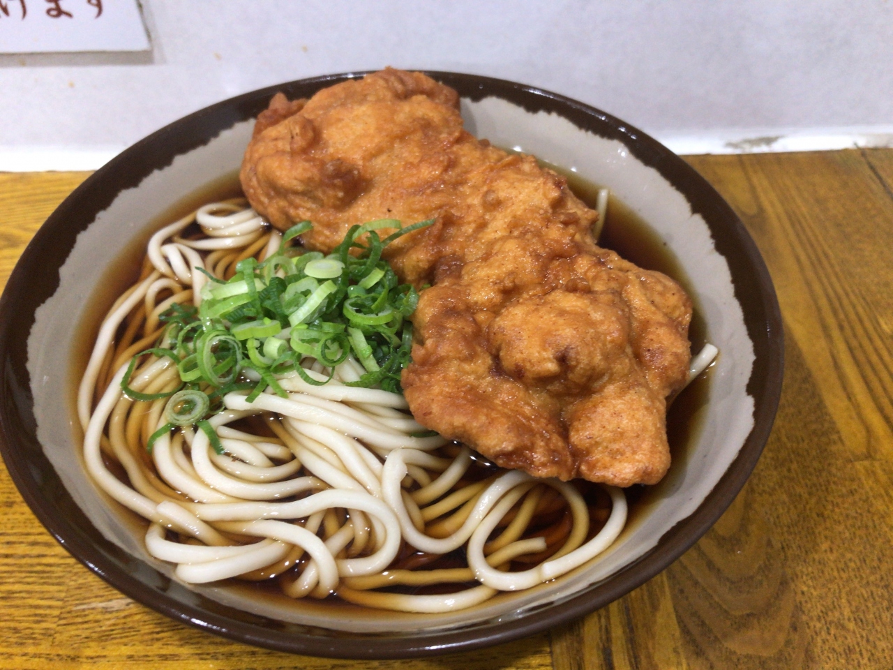 我孫子駅構内に「これでもか!」というほどある弥生軒。テレビなどで注目されていたこともあり期待に胸を高まらせての初訪問でした。定番はやはり唐揚げそば/うどんということで注文しましたが、唐揚げの大きさに驚かされるのと同時に汁の味付けがもう少ししっかりしてほしいなという感じ。唐揚げも大きいことも関係しているのか味に飽き飽きしてしまう点、汁はもう少し薄めてあると蕎麦や唐揚げと合うのかなと思います。個人的には唐揚げだけをそばつゆと一緒に食べている人は意味が分からないです・・・