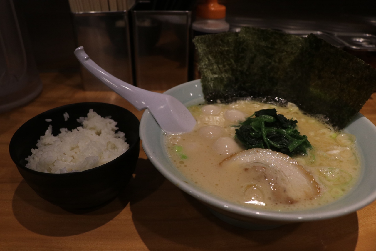 町田駅からは徒歩5分もかからない場所にありますが、駐車場はないので車での来訪時は注意が必要です。豚骨醤油がベースのスープですが、他の家系に比べて豚骨の風味が強く出ているように感じます(ここが本店なので他が薄いのかもしれませんが)それ以外の麺やトッピングについては他店と変わりありませんが、ライスの無料サービスが学生だけなのは少々残念。濃い味のスープと中太ストレート麺にライスは良く合うので、追加料金を払ってでも欲しいところです。