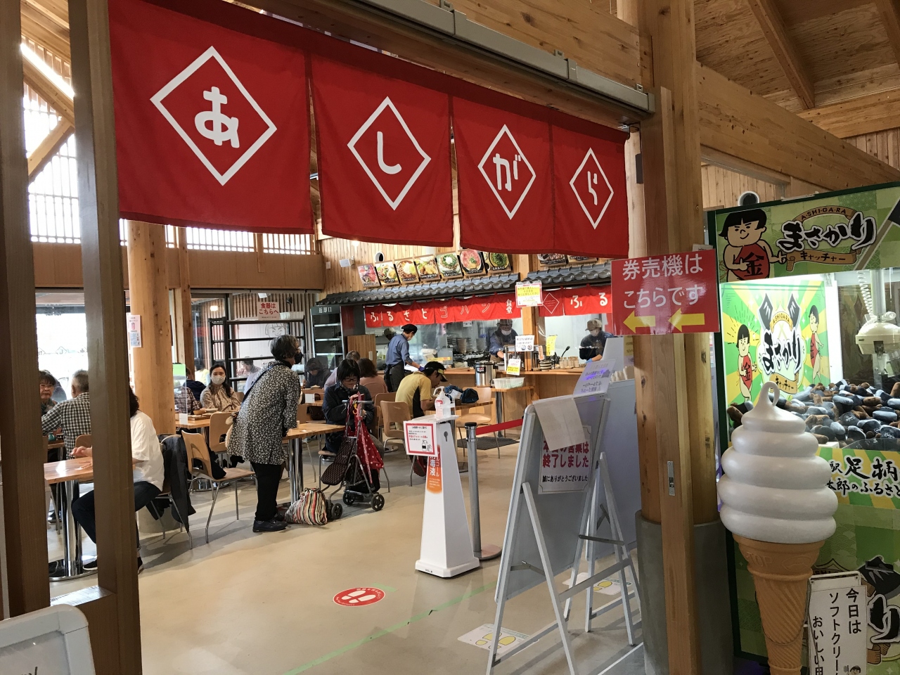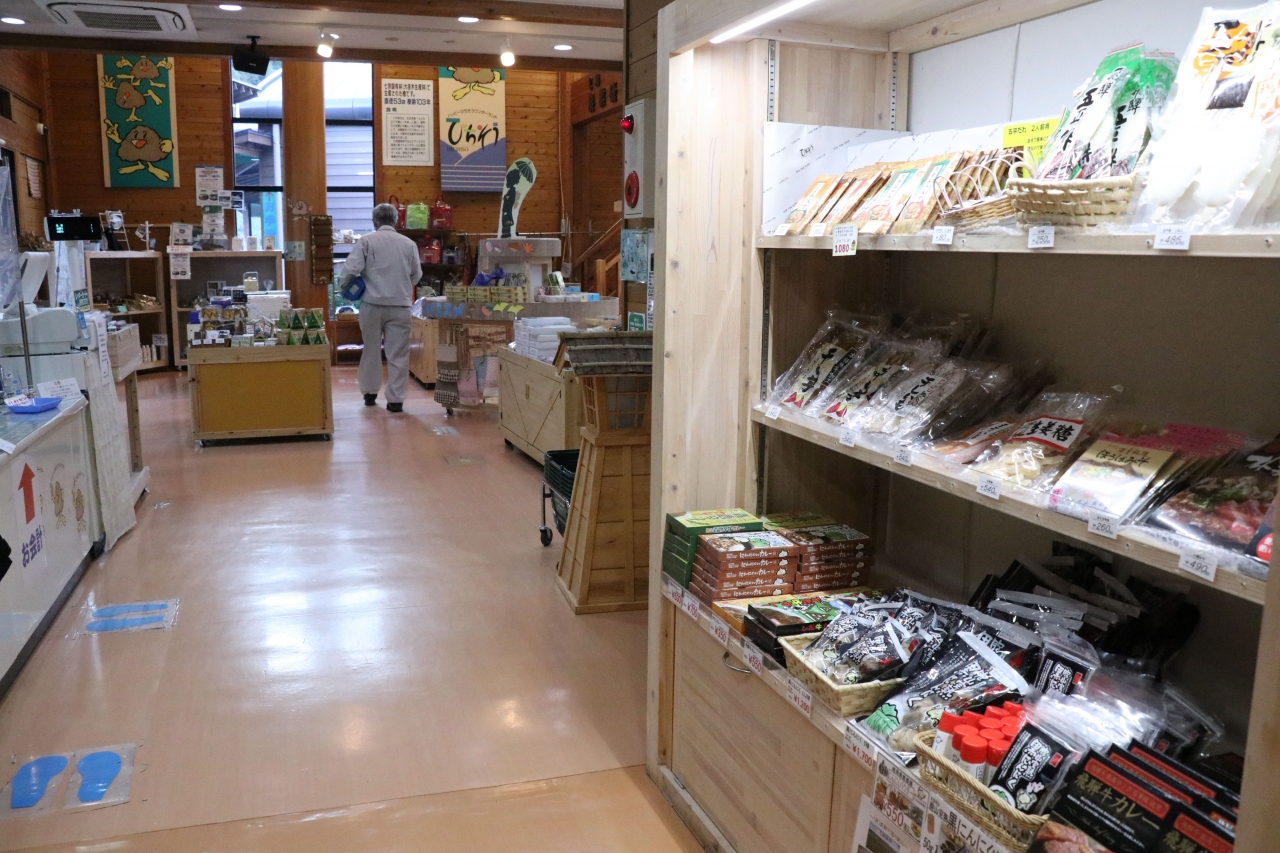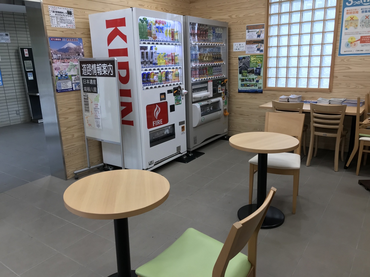 市街地と山間部との境目なので休憩地点としてはちょうど良い場所です。建物側には一般車、道路を挟んで反対側には大型車専用の駐車スペースがありある程度の需要があるのかなと感じます。建物内の売店ではそばなどの麺類やカレー、フランクフルトや揚げ餅といった軽食を取ることができるようです。訪問日は平日だったことも関係しているのかお客さんの姿は少な目。すぐ隣には石の博物館もあるので時間があれば覗いてみるのも良いかもしれません。