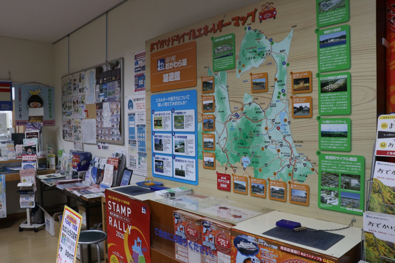 直売所のエリアが広く中は野菜などを中心とした品揃えになっており地域住民のスーパーとしての機能面が強いかなと感じました。夕方時間帯だったからか直売所以外にお客さんの姿はあまり見られずただっぴろい駐車場を含めて少々寂しい光景が広がっていました。近隣の観光施設などを表示しているドライブマップがありましたが、県内の東半分すべてが網羅されており(いかもその半分近くが六ヶ所村の原子力関係)、近隣だけで見ると観光地らしい場所はあまりなく、ここの道の駅も休憩地という位の役割なのかなと。道の駅スタンプは建物に入ってスタッフ詰所の手前にあります。
